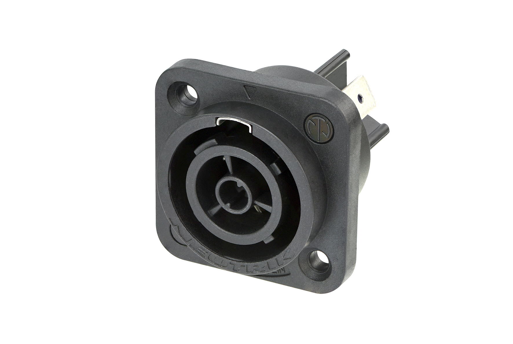 Панельний силовий роз'єм з замком для подачі живлення, серія TRUE1 TOP (True Outdoor Protection). Однофазний, 16 А rms, power-out, плоскі контакти для підключення за допомогою клем. В упаковці 100 шт.