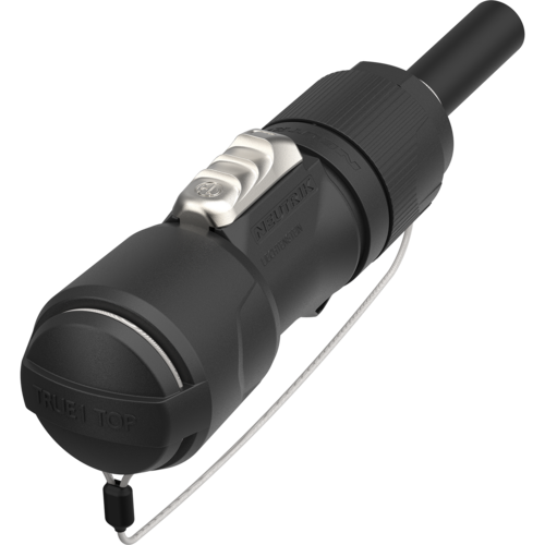 Міцна ущільнювальна кришка (тато) з ергономічним дизайном для кабельних роз’ємів powerCON TRUE1 TOP. Забезпечує надійне з’єднання, захист від забруднення та води, а також легкий монтаж завдяки безступінчатому механізму фіксації.