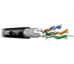 Патч-кабель "вита пара", САТ7, 4 x 2 x AWG26/7 (одножильний мідний провідник 7 x 0,16 мм), подвійне екранування S/FTP (екранування кожної пари фольгою AL/PET + луджена мідна оплетка), 600 Мгц, зовнішня ізоляція PVC (-20°C / +70°C), зовнішній діаметр 6,3 мм, колір чорний (кабель C7PS/F06). Категорія 7 відп. до IEC 61156-6.