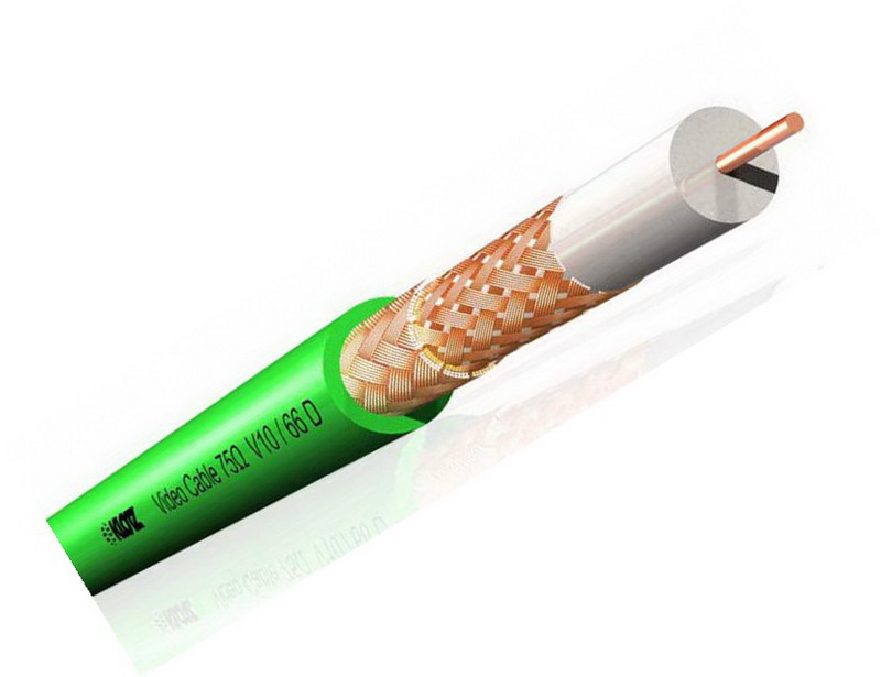 Коаксіальний кабель для аналогового відео, 1,0/6,6 (75 Ом +/- 1%), PVC, дуже низький коеф. затухання, подвійний плетений екран, колір зелений. Attenuation [dB / 100m]: 1 MHz: 0.6; 5 MHz: 1.4; 10 MHz: 2.0; 100 MHz: 6.5; 200 MHz: 9.6; 500 MHz: 15.8