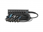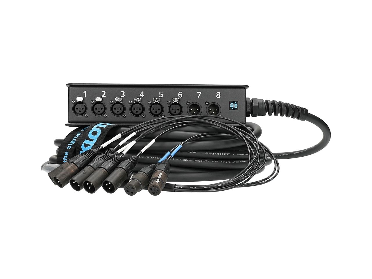 Мультикор 6/2, довжина - 15 м. Роз'єми на кабелі - 2 x XLR-"мама", 4 x XLR-"тато"; панельні роз'єми - 4 x XLR-"мама", 2 x XLR-"тато", алюмінієва коробка (стейджбокс, розміри (ДxШxВ): 272x61x64,5 мм). Гнучкий студійний мультикорний кабель PW..X із перетином провідників Ø 0,22 мм². Для сценічного / студійного використання.
