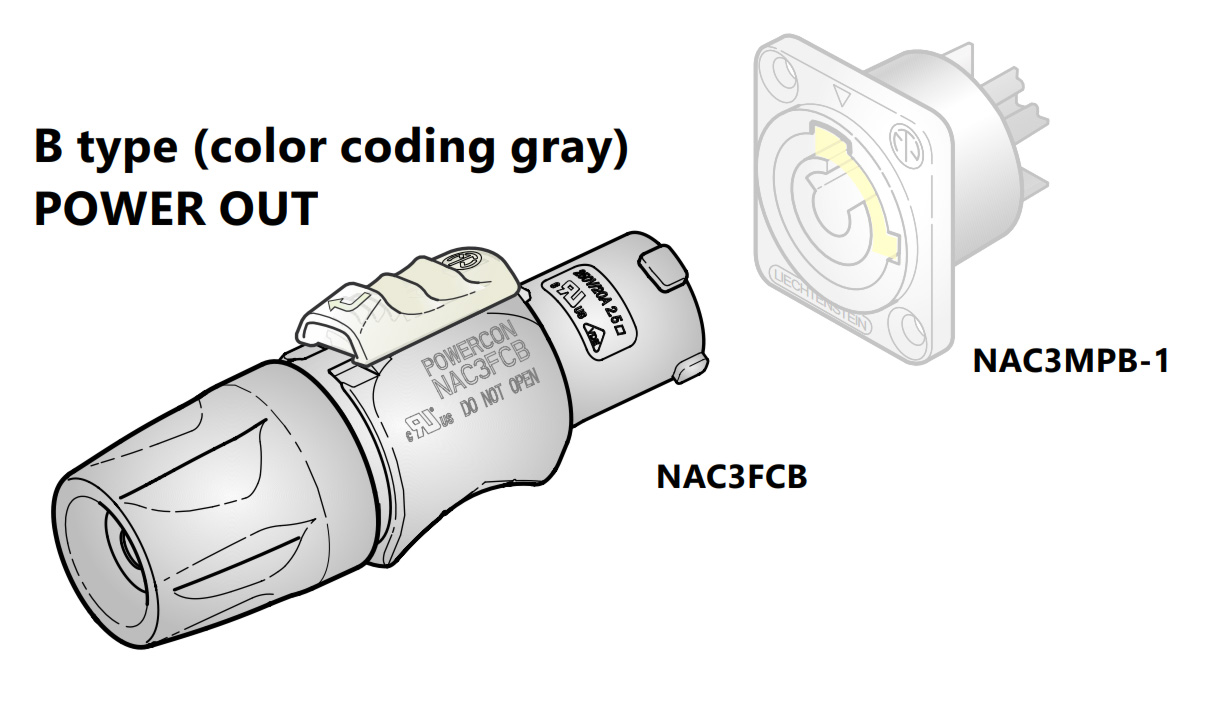 powerCON - Роз'єм кабельний з замком, для Підключення мережі живлення, трьохконтактній, 20 A / 250 В, power-out (сірий) В упаковці 50 шт.