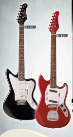 Гітара форми "Jaguar". Цілісна дека, кленовий гриф з палісандровою накладкою. 3 сингли, колір - червоний.