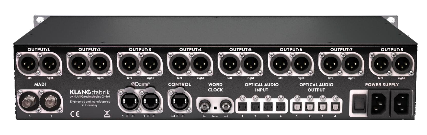 KLANG X-KG-KOND-DAN2 0 грн. (наявність уточнюйте) KLANG:konductor 128 input Dante package - включає 2 x MOD-DMI-DANTE2 карти Dante 64@96 DMI. 16 іммерсивних моніторних міксів, 128 входів, 3 слоти розширення DMI по 64 канали кожен. Підсилювач для навушників з регулюванням гучності, сенсорний екран 7", 48/96 кГц, вхід/вихід Word Clock, 3 роз'єми EtherCON, 1 роз'єм RJ45, 2 USB, 2 блоки живлення, висота 3U.