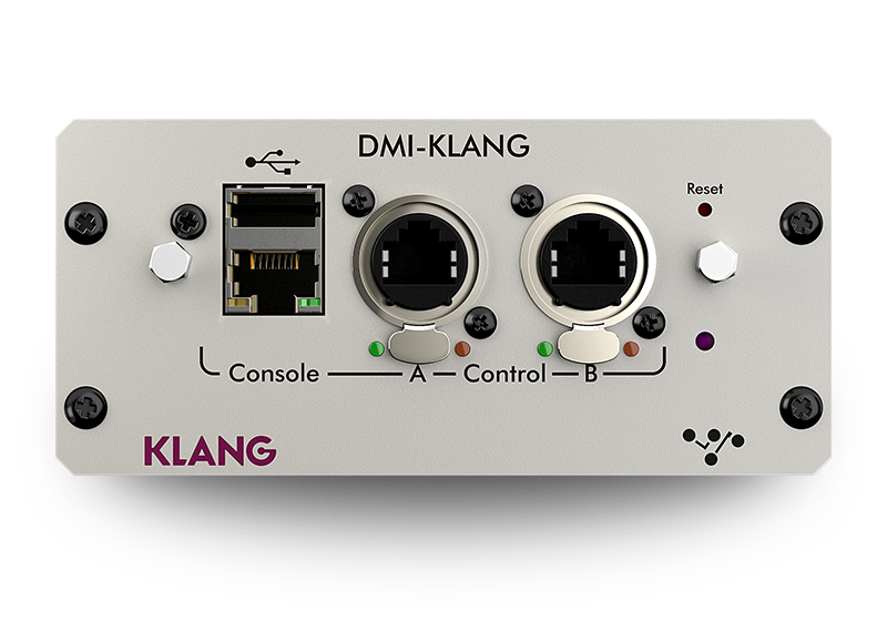 DiGiCo DMI модуль для системи індивідуального моніторингу KLANG (64 входи / 16 виходів), 16 іммерсивних міксів для вушного процесу, 64 входи, частоти дискретизації 48/96 кГц, 2 роз'єми EtherCON, 1 роз'єм RJ45, 1 USB. Підходить тільки для консолей DiGiCo з розширювальними слотами DMI та Orange Box.