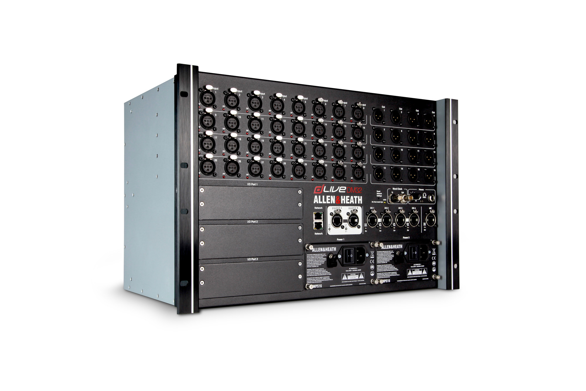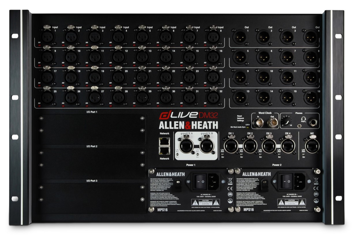 Мікшерний рек системи dLive, 96кГц, підтримує 128 входів / 64 виходи, 32 локальних mic / line входів XLR, 16 локальних line виходів XLR, 1 x 6,3" PAFL, 16 FX процесорів, інтерфейси gigaACE, 2 x DX, ME, 1x I/O слот розширення, 2 х Network, Wordclock BNC I/O, 1 блок живлення. Має встановлений модуль UltraFX.