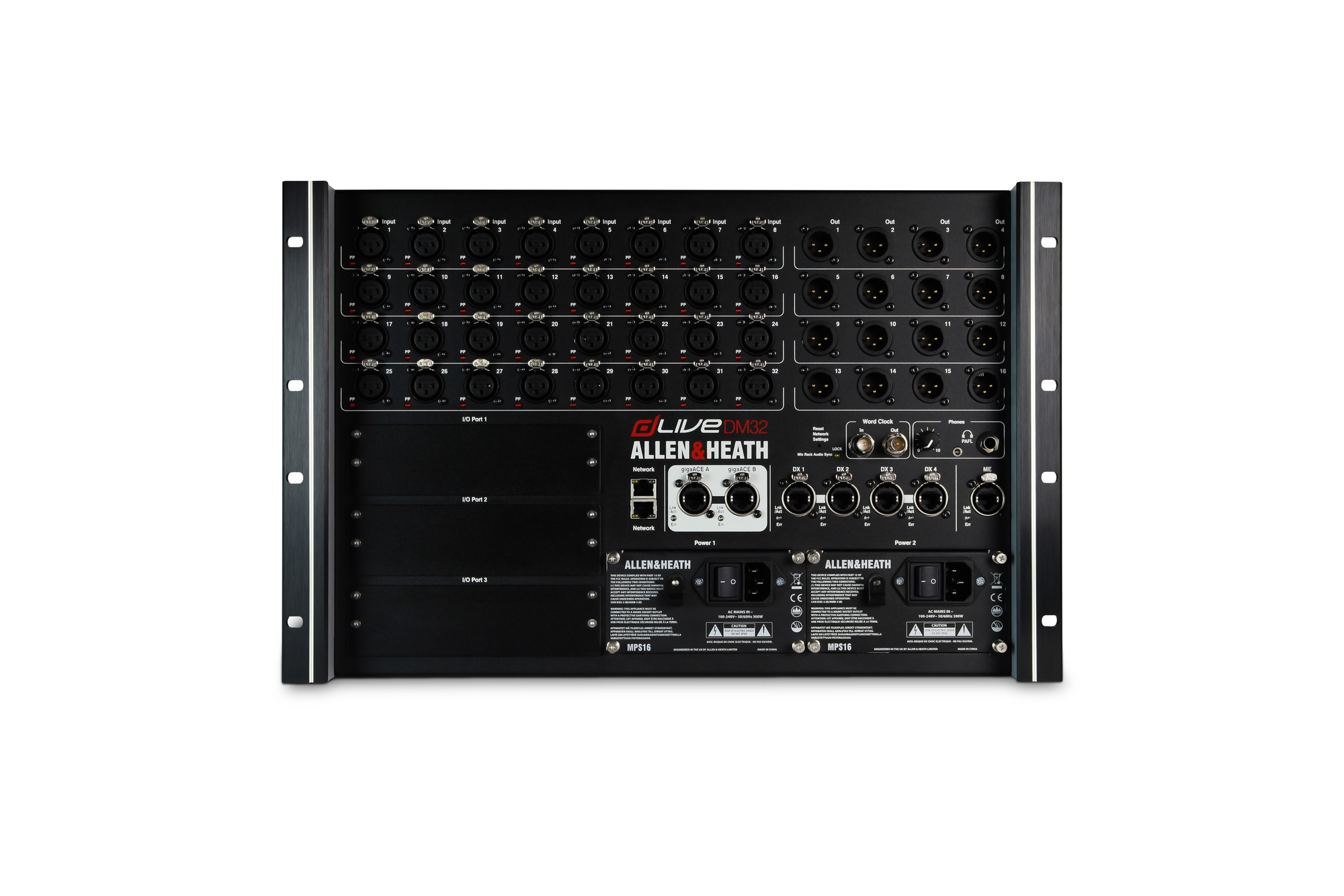 Мікшерний рек системи dLive 96кГц, підтримує 128 вхідних / 64 вихідних канали, 32 локальних mic/line входи XLR, 16 локальних line виходів XLR, 1 x 1/4"+3,5 мм. PAFL, 16 FX процесорів16 FX процесорів, вбудовані інтерфейси 2 х GigaACE, 2 х DX, 1 х ME, 3 x I/O слоти розширення, Ethernet, Wordclock BNC I/O, 1 блок живлення (розширення до 2-х). Має встановлений модуль UltraFX.