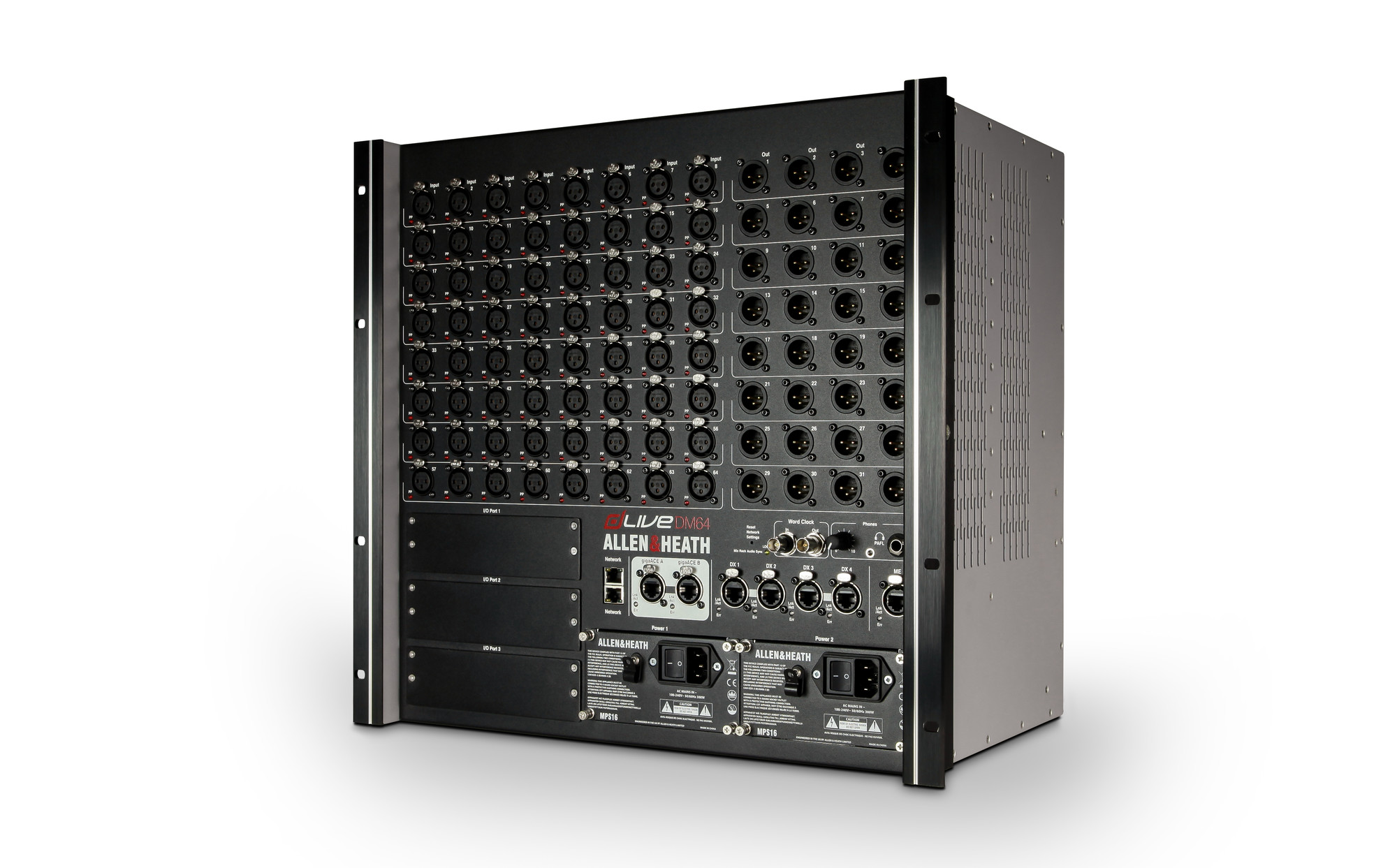 Allen Heath dLive-DM64 0 грн. (немає) Мікшерний рек системи dLive 96кГц, підтримує 128 вхідних / 64 вихідних канали, 64 локальних mic/line входи XLR, 32 локальних line виходів XLR, 1 x 1/4"+3,5 мм. PAFL, 16 FX процесорів, вбудовані інтерфейси 2 х GigaACE, 2 х DX, 1 х ME, 3 x I/O слоти розширення, Ethernet, Wordclock BNC I/O, 1 блок живлення (розширення до 2-х)