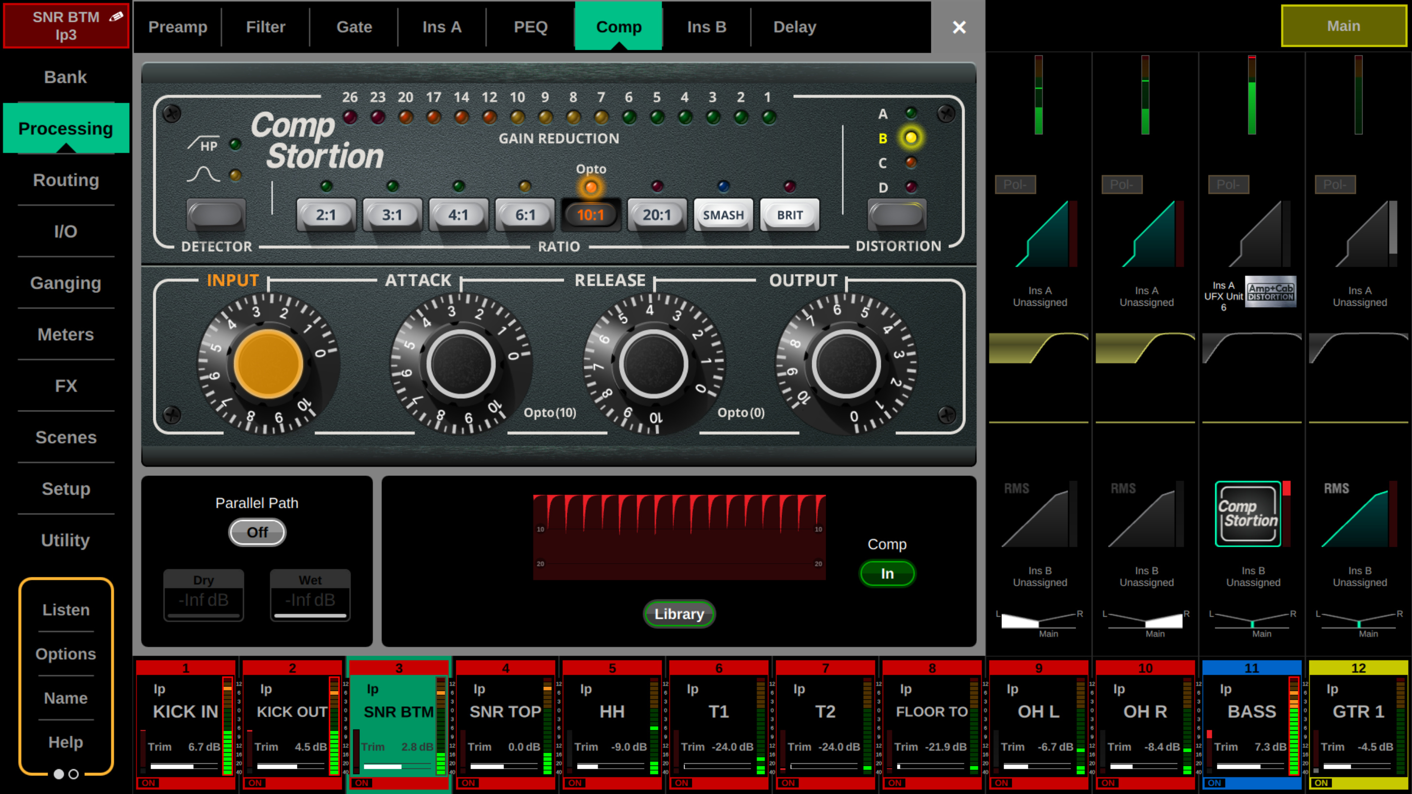 Цифровий мікшерний пульт з встановленим процесором RackUltra FX та обробкою dPack. 96 кГц, ядро XCVI FPGA з наднизькою затримкою (0,7 мс), сенсорний екран 15,6", 12 моторизованих фейдерів, 6 шарів (72 канальні лінійки), 96 вхідних каналів (LPF/HPF, Gate, PEQ, Comp, Delay) / 56 шин. 6 mic/line входів XLR, 6 line виходів XLR, 1 x stereo AES вхід, 1 x stereo AES вихід, обробка DEEP (компресори PeakLimiter 76, 16T, 16VU, Mighty, Opto, OptTronik, Bus; експандери Source Expander, Dual Threshold Expander; Dual Stage Valve Preamp; NEQ12), 12 процесорів RackExtra FX (включаючи Hypabass та Transient Controller), 8 блоків RackUltra FX, 24 процесори Dyn8 (4 смуги Dynamic EQ + 4 смуги Multiband Compression), 8 Mute і 16 DCA/MCA груп, автомікшер до 64 каналів (до 4 зон), інтерфейс SLink, 2 x I/O слоти розширення для опціональних карт dLive (128x128 при 96 кГц), 2 x Network, стереозапис на USB носій (вбудована в консоль пам'ять 16 Гб), 18 софт клавіш, BNC Wordclock I/O, 546 x 627 x 269 мм, 17,5 кг