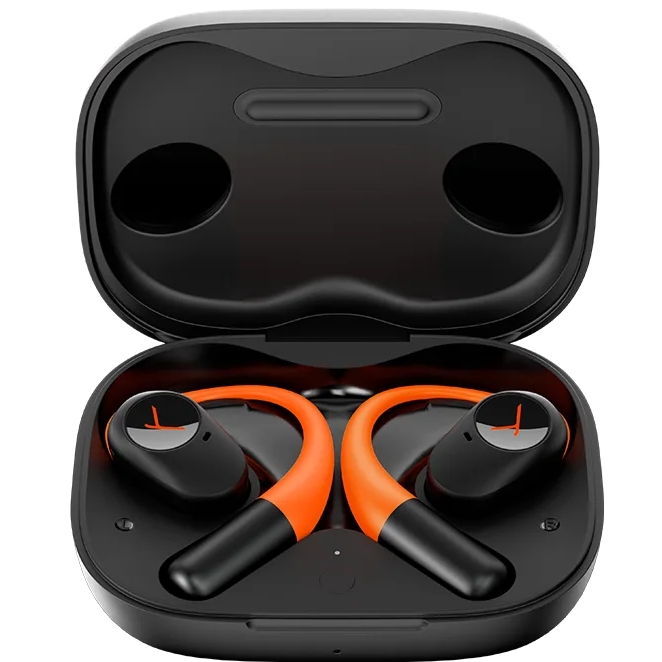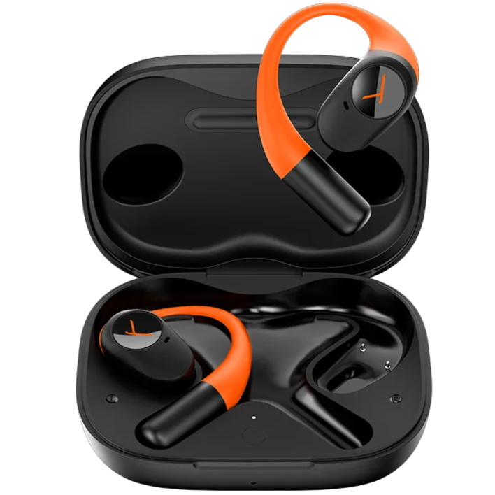 TWS гарнітура In-Ear відкритого типу з безпровідною технологією Bluetooth® 5.3. Дизайн конструкції забезпечує стабільну посадку без тиску на вуха, що ідеально підходить для бігу та активних занять. Ергономічні вушні зачепи та надлегка конструкція забезпечують надійну фіксацію та тривалий комфорт. Чіткі високі частоти, збалансовані середні та потужні баси, гарантує динамічне та детальне звучання. 11год звучання навушників після одного заряджання та 25год роботи від акумуляторів з додатковим заряджанням в футлярі. Захист від пилу та бризок класу IP54. Легкий контроль та керування усіх індивідуальних налаштувань в фірмовому додатку. Частотний діапазон: 20 – 20000 Гц. Дальність прийому: до 15м. Підтримка профілів Bluetooth®: HFP, A2DP, AVRCP. Кодеки: SBC, AAC. Комплектація: навушники, USB-С кабель, зарядний футляр. Колір – чорний з оранжевими вставками