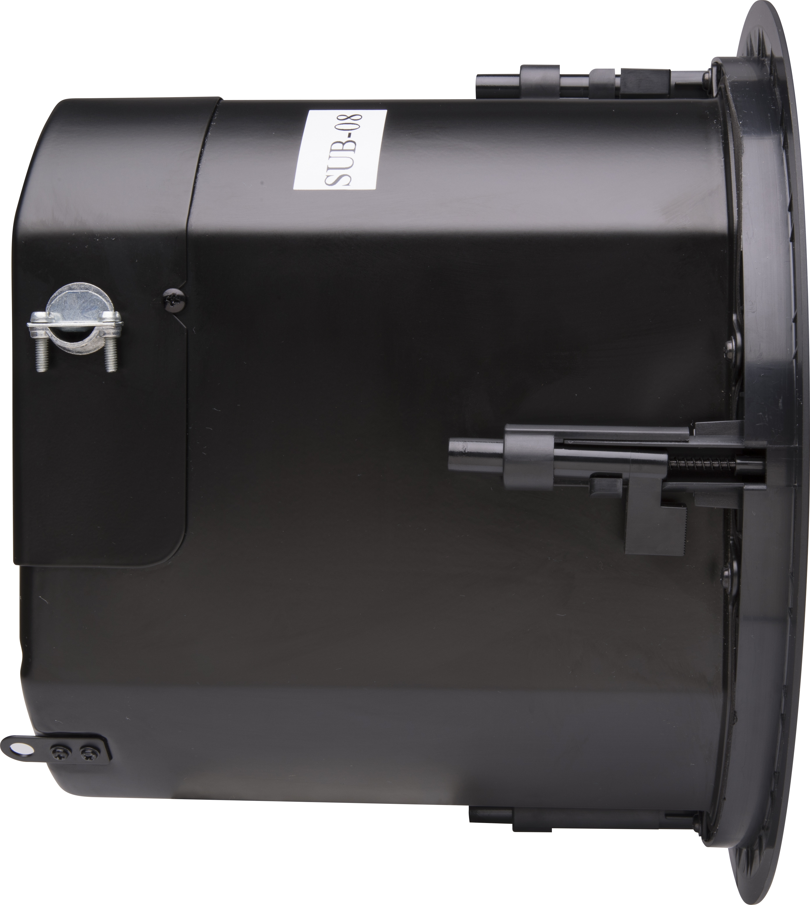 Стельова АС (сабвуфер), 6,5 "з подвійною обмоткою, RMS / Program - 100 / 200Вт - 4Ом, 70 / 100В (100, 50, 25, 12,5 Вт), SPL 106 дБ (розрахунковий пік @ 1 м) , чутлівість (1Втх1м) 86 дБ, 55 - 150 Гц, моно-вхід (4-контактний Роз'єм Euroblock з виходом thru), моно-вихід hi-pass (2x4-контактних роз'єми Euroblock для 4 сателітів), 8,7 кг, IP-34, колір - чорний.
