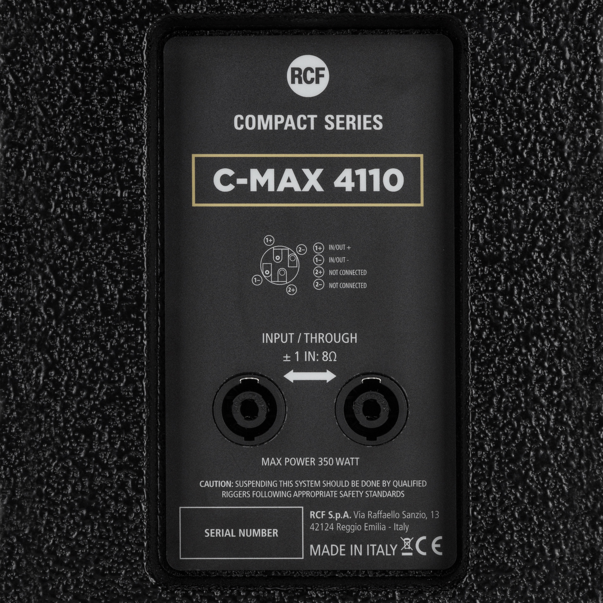 RCF C-MAX 4112 65 790 грн. (немає) Двосмуговий пасивний гучномовець, потужність 400 Вт (RMS), 60-20 000 Гц, макс. SPL (1м) - 130 дБ, покриття V/H - 90°/70°, 12" НЧ-динамік, 1" ВЧ-драйвер, 24,5 кг, IP40, колір - чорний