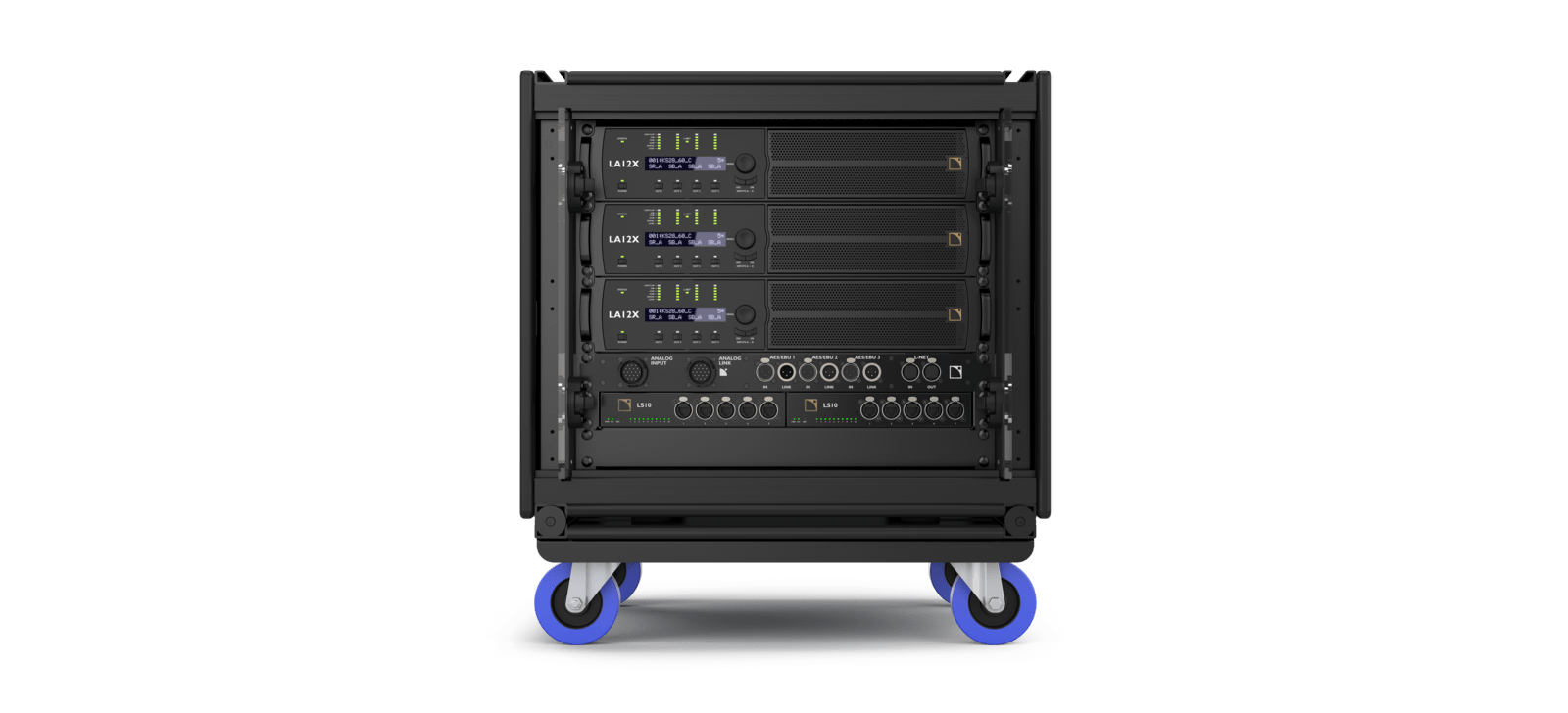 Рек підсилення з (з встановленими підсилювачами 3 x LA12X, мережевими комутаторами 2хLS10, сигнальною та силовою панелями)