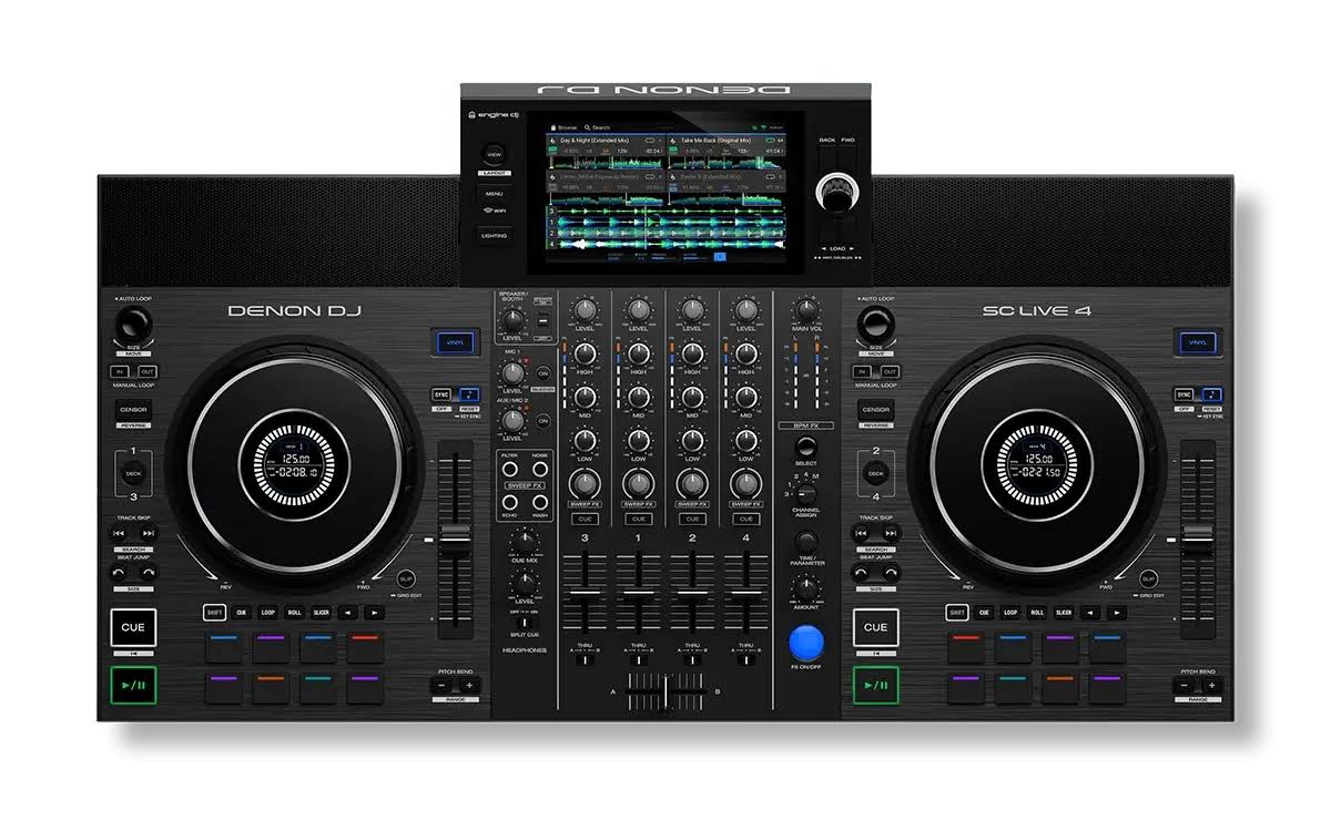 SC LIVE 4 — це 4-канальний автономний DJ-контролер із 7-дюймовим сенсорним дисплеєм, вбудованими динаміками та Wi-Fi. Цей all-in-one пристрій клубного рівня дарує діджеям максимальну свободу творчості та доступ до мільйонів треків через Amazon Music Unlimited.