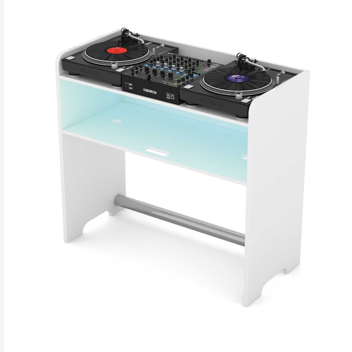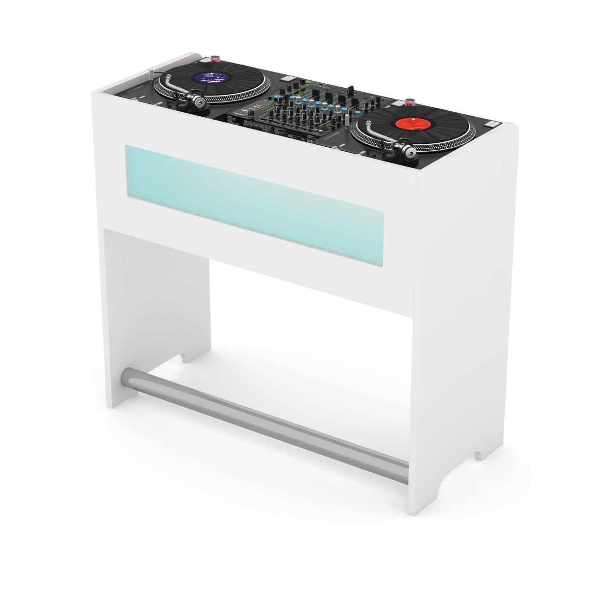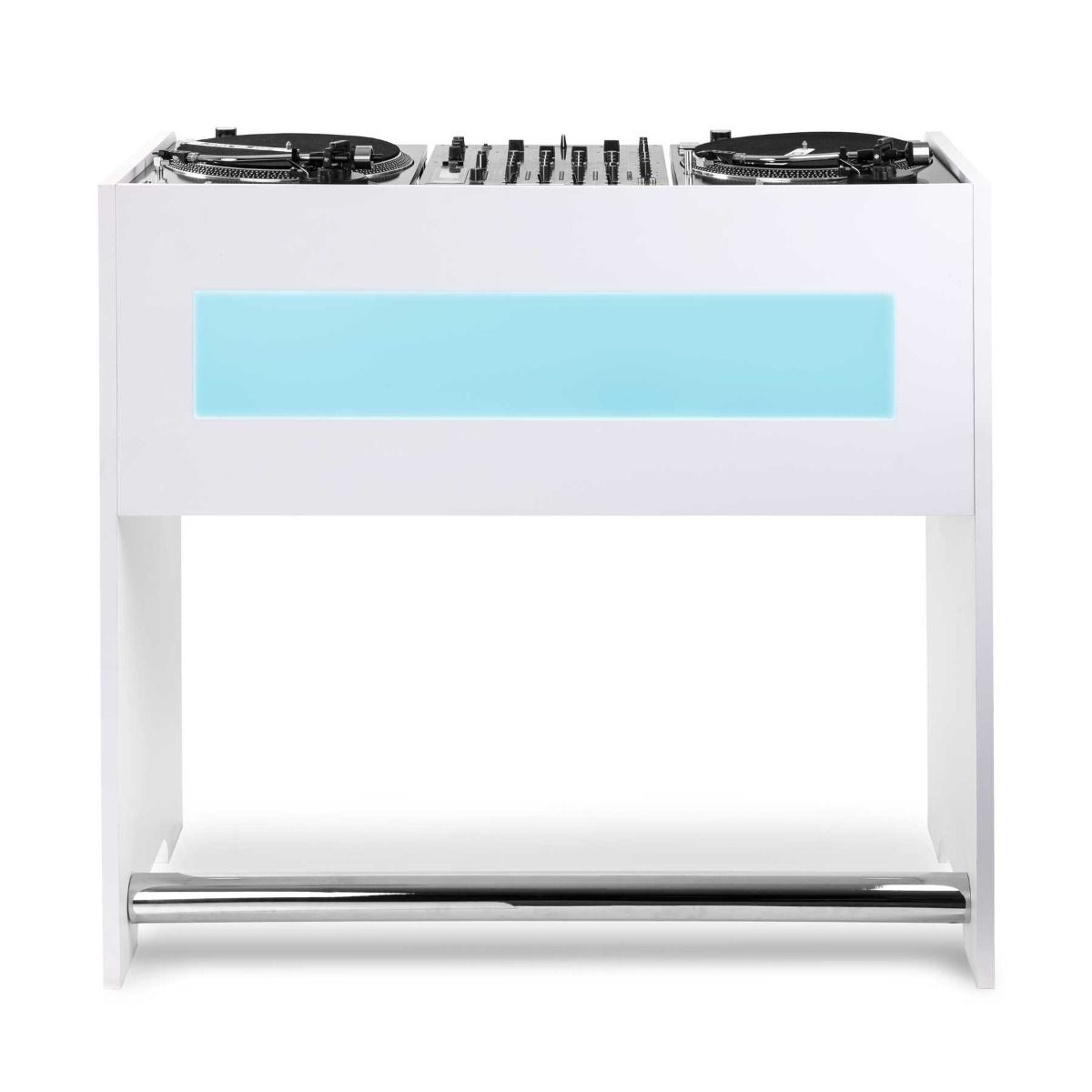 "Glorious Gig Bar - це стильний і сучасний дизайн меблів для ді-джеїв. Вишукане поєднання матеріалів підкреслює амбіції Gig Bar бути не лише корисним місцем для діджейського обладнання. Крім того, ця робоча станція DJ доступна в чорному або білому кольорі. Матеріал: МДФ Розміри: 1094 х 1000 х 490 мм Вага: 31 кг Особливості Для 2 вертушок або настільних CD-плеєрів або контролера та 1 мікшера (до 14 '') Передня пластина високої якості з акрилу Масивна алюмінієва підставка Колір - Білий