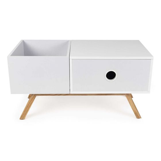 Високоякісні меблі в стилі ретро 60-х років. Ідеально підходить для розміщення у вітальні. З окремою поверхнею для програвача та з окремим місцем для колекції вінілу. Turnboard Lowboard ідеальна як місце для прослуховування. Відкритий ящик для платівок. Надає прямий доступ до 130 штук. Корпус матеріалу: дерево МДФ з білим глянсовим шпоном Матеріал підставки: деревина ясена (біла зола) Зовнішні розміри корпусу: 862 х 240 х 420 мм (Д х В х Ш) Загальна висота: 444 мм Вага: 17 кг