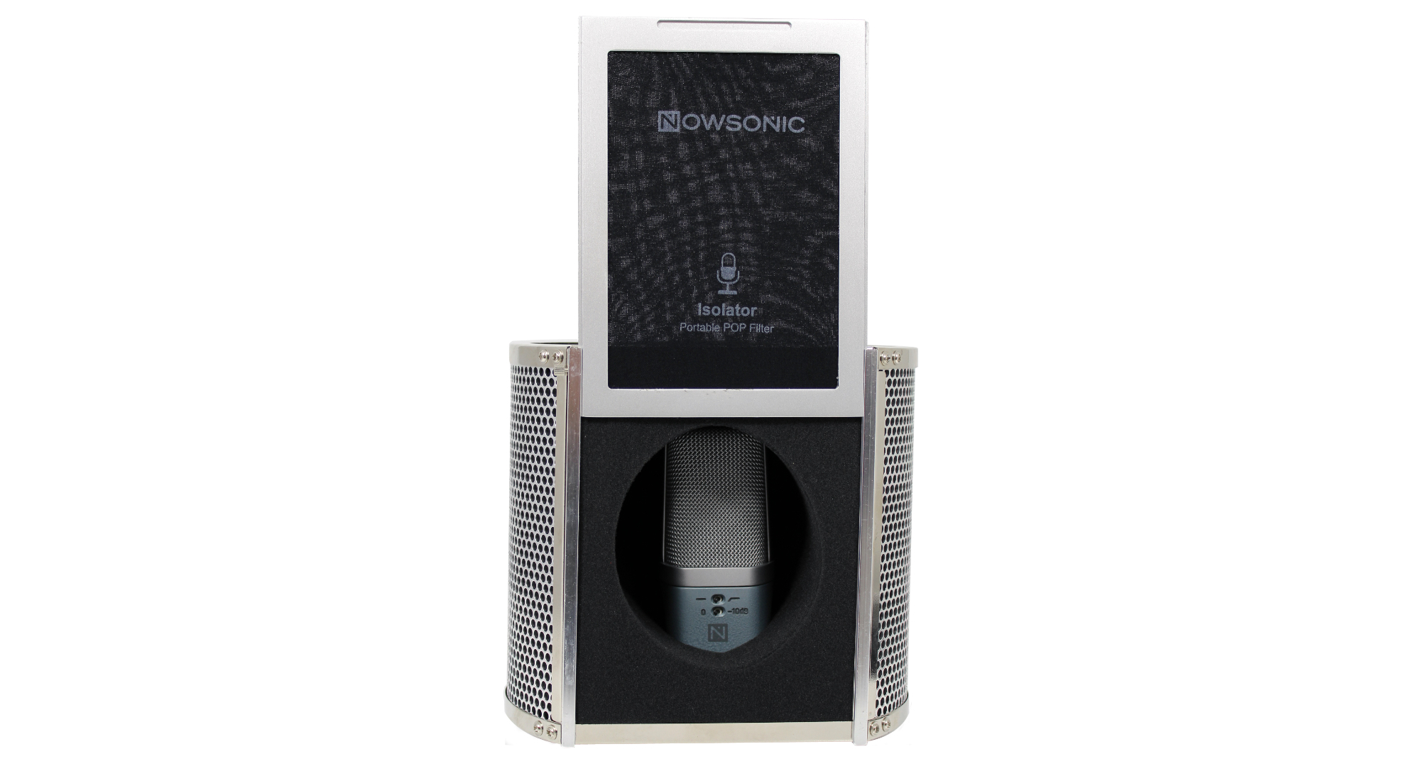 Ізоляційна камера - поп фільтр. Nowsonic Isolator - це акустична камера, яка поглинає шуми та відображення на 360 градусів. Наповнювач виконаний зі спеціальної акустичної піни. Isolator ідеально підходить для запису мови і вокалу в непідготовлених умовах. Забезпечує акустичне поглинання та ізоляцію мікрофона від зовнішніх звуків. Усуває навколишній шум. Комбінація поглинання на 360 градусів і поп-фільтра . Компактний і легкий - ідеально підходить для мобільного запису, подкастів і конференцій. Повністю металева конструкція.