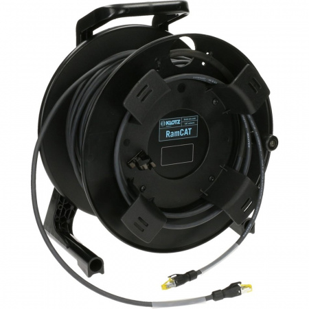 Кабель "вита пара" CAT6a (SF/UTP) RamCAT, на котушці (GT310), турово класу. Кабель RC6A-SB1X - 4 x 2 x 0,57 мм² (AWG 23/1), надійна оболонка з поліуретану (PUR), зовнішній діаметр 8,6 мм, pinout: TIA / EIA 568-B, макс. швидкість передачі даних: 10 Гбіт/с, роз'єми екрановані Neutrik etherCON CAT6A RJ45, колір - чорний, довжина - 50 м.