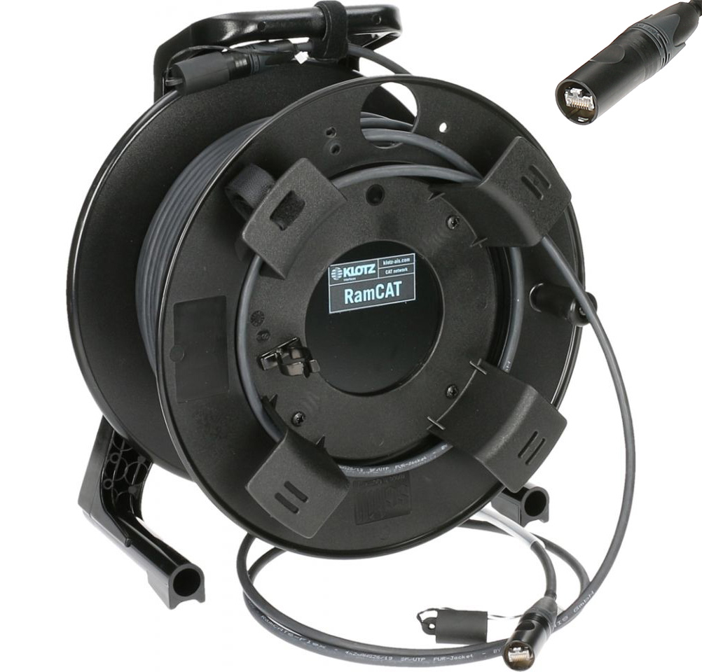 Klotz RC6AEEW050 32 250 грн. (немає) Кабель "вита пара" CAT6a (SF/UTP) RamCAT, на котушці (GT310), турово класу. Кабель RC6A-SB1X - 4 x 2 x 0,57 мм² (AWG 23/1), надійна оболонка з поліуретану (PUR), зовнішній діаметр 8,6 мм, pinout: TIA / EIA 568-B, макс. швидкість передачі даних: 10 Гбіт/с, роз'єми екрановані Neutrik etherCON CAT6A RJ45, колір - чорний, довжина - 50 м.