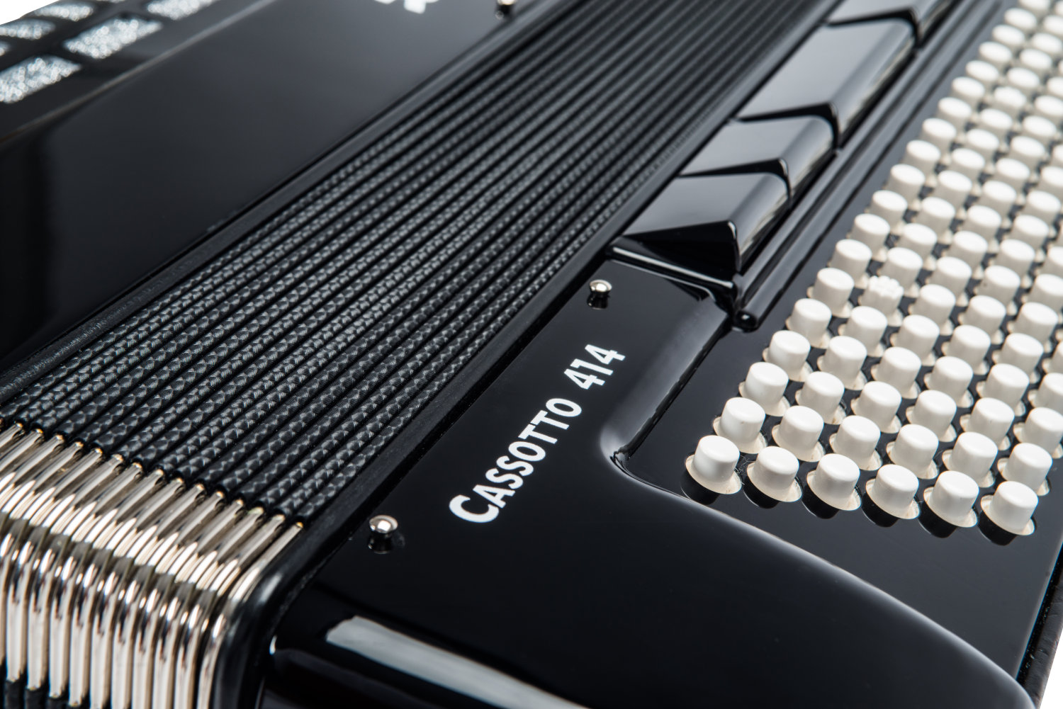 Weltmeister Cassotto 414 41/120/4/11/5 - професійний акордеон, який має більш легкий корпус ніж інші інструменти цього класу. При цьому він також оснащений ламаною декою. Клавіш в правій руці: 41, кнопок в лівій клавіатурі: 120, ліві регістри: 5, голоси дискант: IV, голоси бас: IV, регістри дискант: 11, регістри бас: 5, діапазон дискант: f - a '' ', діапазон бас: E - d' '#, італійські пластини, захист хутра, розміри: 482 х 192, вага: 11 кг.