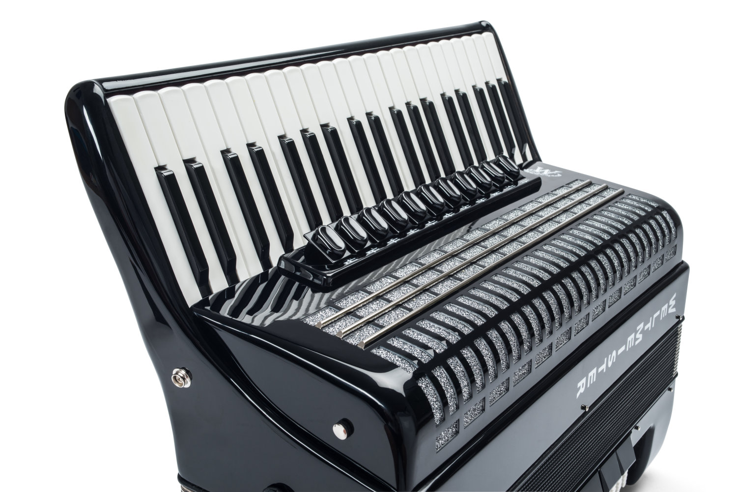 Weltmeister Saphir 41/120/4/11/5 IR 276 948 грн. (немає) Weltmeister Saphir 41/120/4/11/5 IR - найбільший клавішний акордеон без ламаної деки (cassotto). Клавіш у правій руці: 41, кнопок в лівій клавіатурі: 120, ліві регістри: 5, голоси дискант: IV, регістри дискант: 11, діапазон дискант: f - a '' ', діапазон бас: E - d' '#, захист хутра, італійські пластини, розміри: 482 х 192, вага: 10,6 кг.