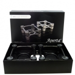 Пара алюмінієвих стійок розроблені спеціально для висококласних hi-fi-акустичних систем середнього розміру, студійних моніторів, великих підлогових акустичних систем. Розміри стійок Aperta 155x190x75 мм підійдуть для акустичних систем вагою до 18 кг. Завдяки малогабаритності стійок, АС можна розташовувати максимально низько, при цьому забезпечується ідеально чистий звук. Можливість регулювати нахил дозволяє встановити обладнання під оптимальним кутом. Завдяки детальної градації кута (до 6,5 градуса) знайти і зафіксувати ідеальний кут дуже легко. Колір чорний. В комплекті 2шт