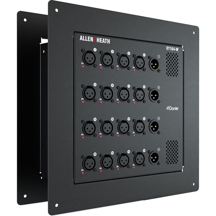 Dante інсталяційний настінний розширювач системи dLive / AHM / Avantis / SQ, 48/96 кГц, 16 входів XLR з фантомним живленням, 4 виходи XLR, 2 порти Dante etherCON (primary/secondary, підтримуються режими redundant/switched), пряме управління передпідсилювачами від dLive, Avantis, AHM-64 та SQ (необхідна карта розширення Dante), сумісний з AES67, Dante Domain Manager. 3 варіанти живлення: 100-230 В змінного струму, що живиться від IEC або гвинтових клемних колод, а також 12 В постійного струму (може використовуватися як резервний блок живлення). Програмне забезпечення DT Preamp Control дозволяє дистанційно керувати розширювачами DT та дозволяє використовувати розширювачі DT із оснащеними Dante цифровими мікшерними консолями та системами управління звуком