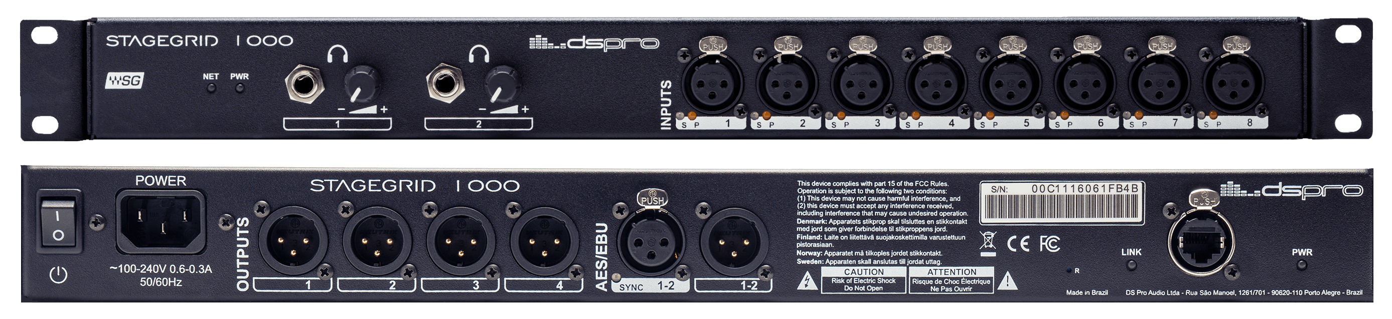 Sound Grid сумісний I / O інтерфейс, 4U, 8 аналогових входів, 4 аналогових виходів, 96кГц, WordClock, 1 AES I / O, 2 виходи на навушники.