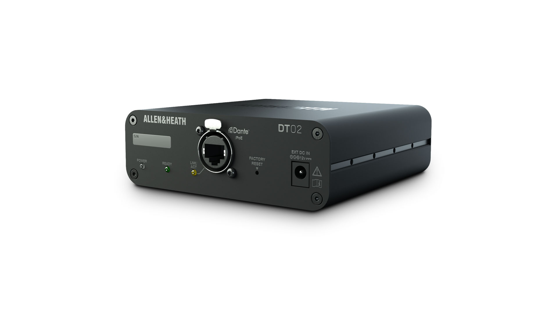 Вихідний інтерфейс Dante, 48 кГц/96 кГц, 2 x XLR (лінійні виходи), живлення від PoE або 12 В постійного струму, EtherCon, алюмінієвий корпус. В комплекті кріплення для поверхневого монтажу. Блок живлення не входить в комплект. Опціональне кріплення для монтажу в рекову стійку (DT-RK19, продається окремо).