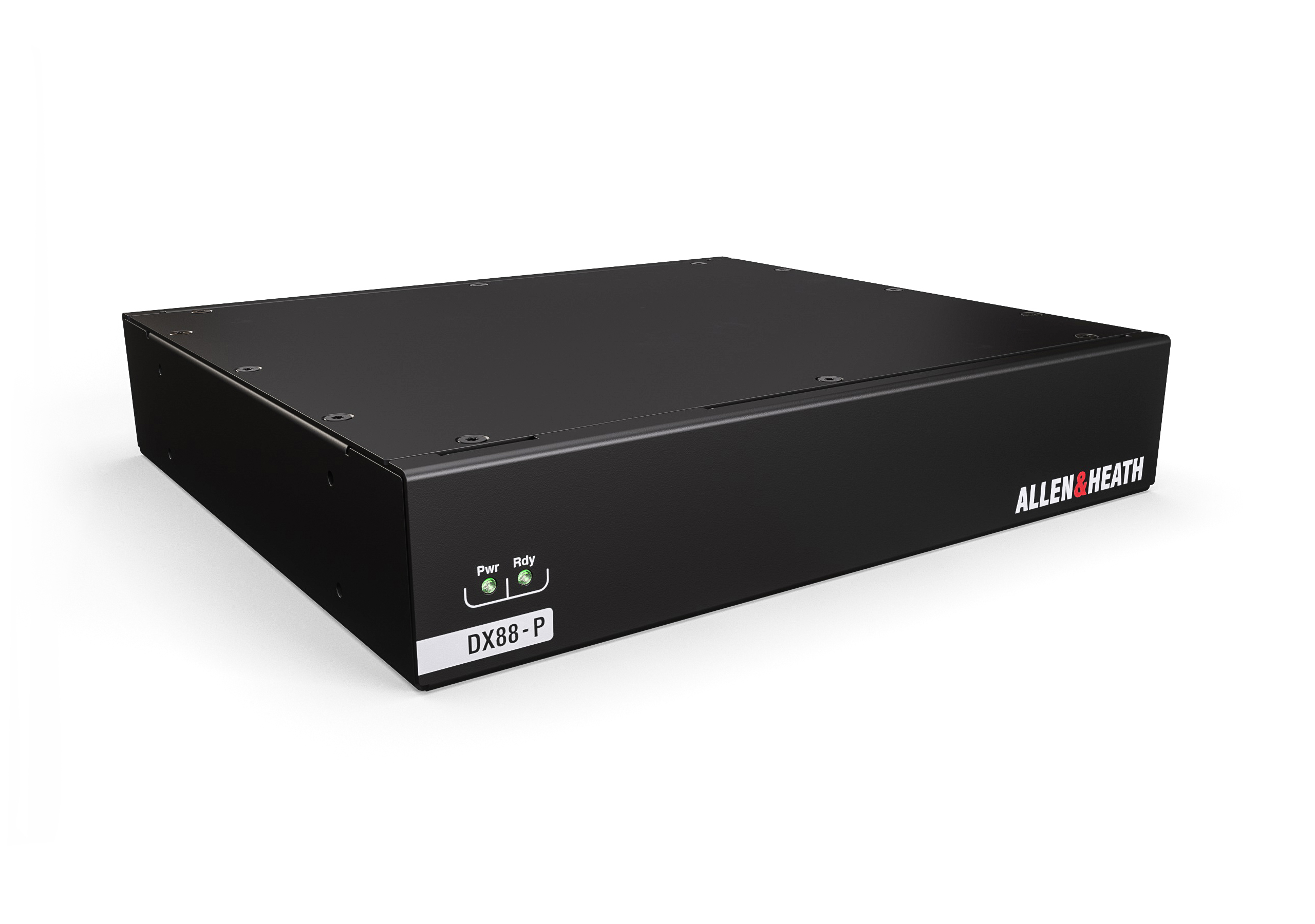 Інсталяційний рек розширення системи dLive / AHM / Avantis / SQ (інтерфейс DX: dLive Surface / MixRack, DX Hub, DX Link card, SLink), 96 кГц, 8 входів XLR (Mic/Line), 8 виходів XLR (Line), 2 х EtherCON (порти DX), 1 блок живлення. Каскадний режим дозволяє послідовно підключити другий DX88-P, DX164-W, DX012 або DX168 через з'єднання DX B. Резервні підключення DX доступні для сумісних систем dLive. Живлення від 12 В.
