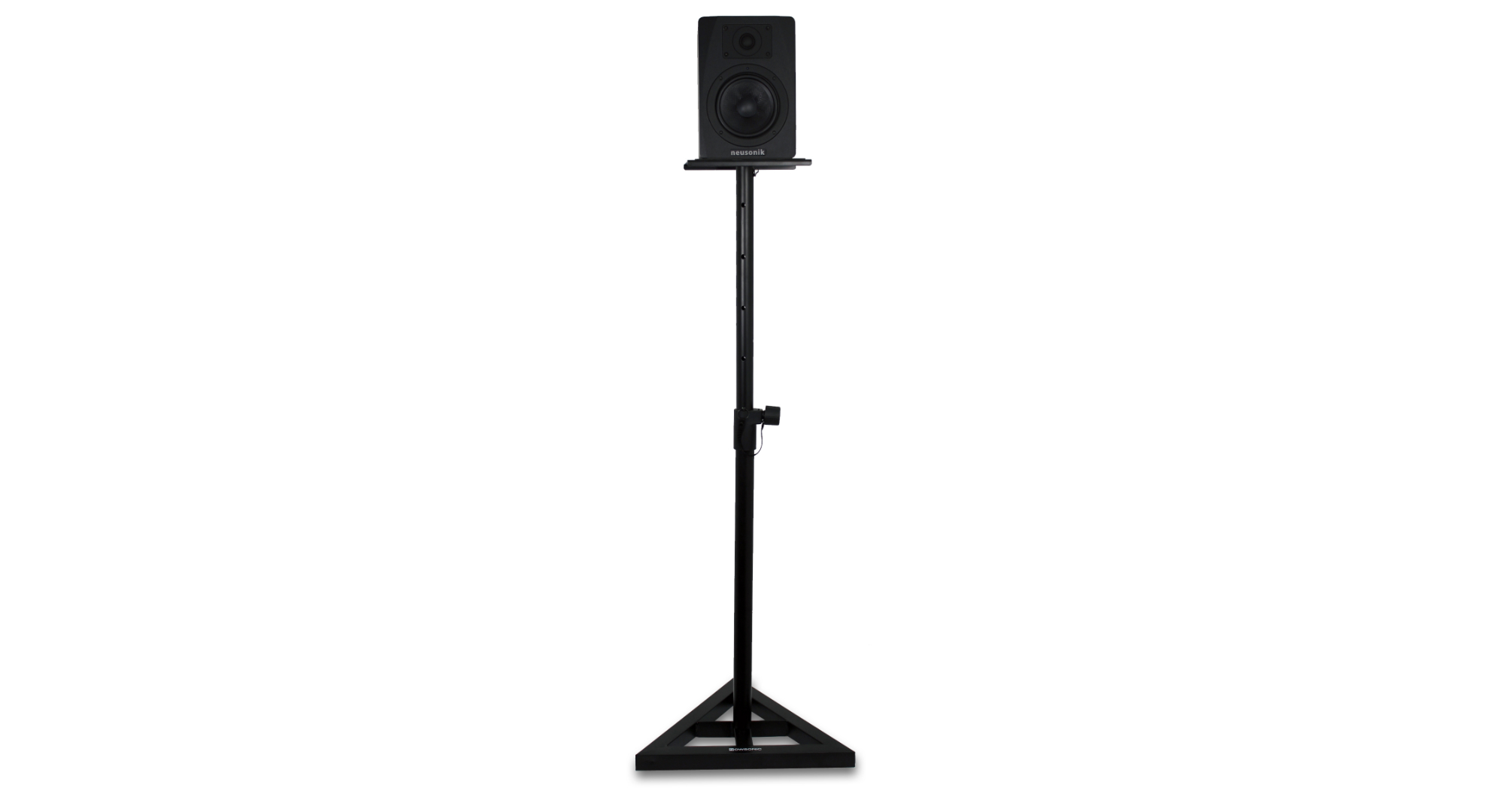 Підставка для монітора з регулюванням висоти. Підходить для всіх звичайних студійних моніторів. Висота: 930 - 1530 мм регулюється за допомогою затискного гвинта і стопорної шпильки. Плита: 230х 230 мм, діаметр труби: 35 - 38 мм Максимальне навантаження: 30 кг Підставка: формат трикутний. Вага: 3,7 кг