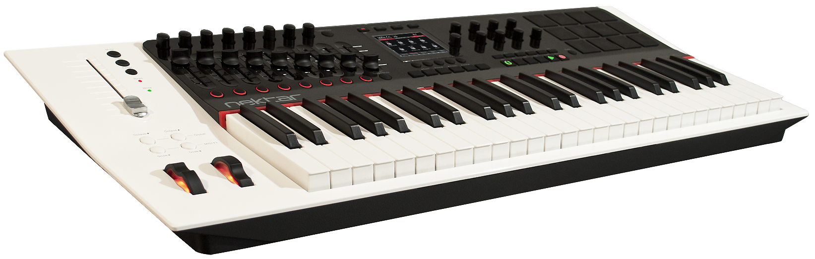Nektar Impact LX49+ 9 072 грн. (є в наявності) 49 повнорозмірних клавіш з синтезаторною механікою. Зручне розташування коліс Pitch Bend, Modulation, кнопок зміни октав і транспонування. Кнопки Mixer, Instrument, Preset підсвічені індикаторами Led. 6 транспортних кнопок + Track і Patch, 8 призначуваних педів з чотириколірним підсвічуванням Led. Scenes і Clips кнопки для Logic, Reason і Bitwig. Живлення по USB. Роз'єм для підключення педалі Sustain (купується окремо). Сумісність з Windows, Mac, Linux, iOS (для підключення до IPad потрібно перехідник Camera Connection Kit). Комплектується повною версією Bitwig 8-Track. Режим Nektar DAW Integration відповідає за тісну інтеграцію з Cubase, FL Studio, Nuendo, GarageBand, Sonar, Studio One, Bitwig, Logic, Digital Performer, Reaper і Reason.