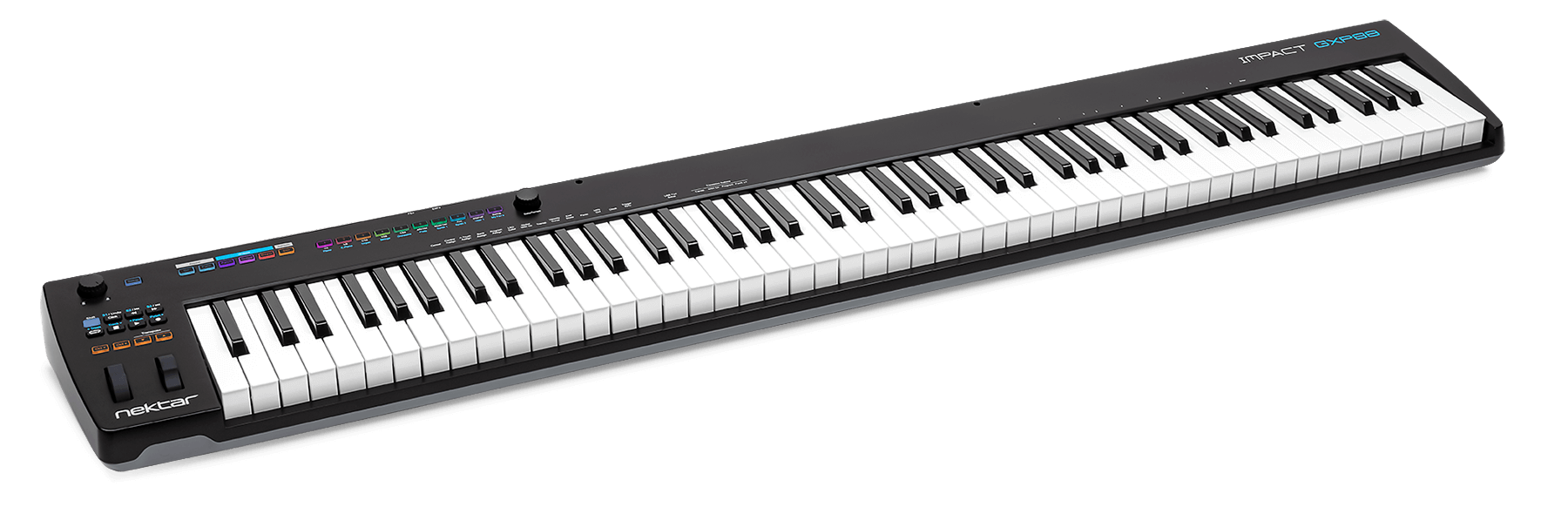 USB MIDI-Клавіатура Nektar Impact GXP88 має 88 напівзважених клавіш і миттєвий доступ до елементів управління, включаючи механізм повтору в реальному часі, потужне управління плагінами Nektarine і інтеграцію Nektar DAW. Клавіші з функцією aftertouch, 14 RGB LED кнопок, колеса пітч і модуляції, 1 кнопка-енкодер, кнопки зміни октав, транспонування. Розміри: 134,5 x 23 x 8 см. Вага: 8,2 Кг.