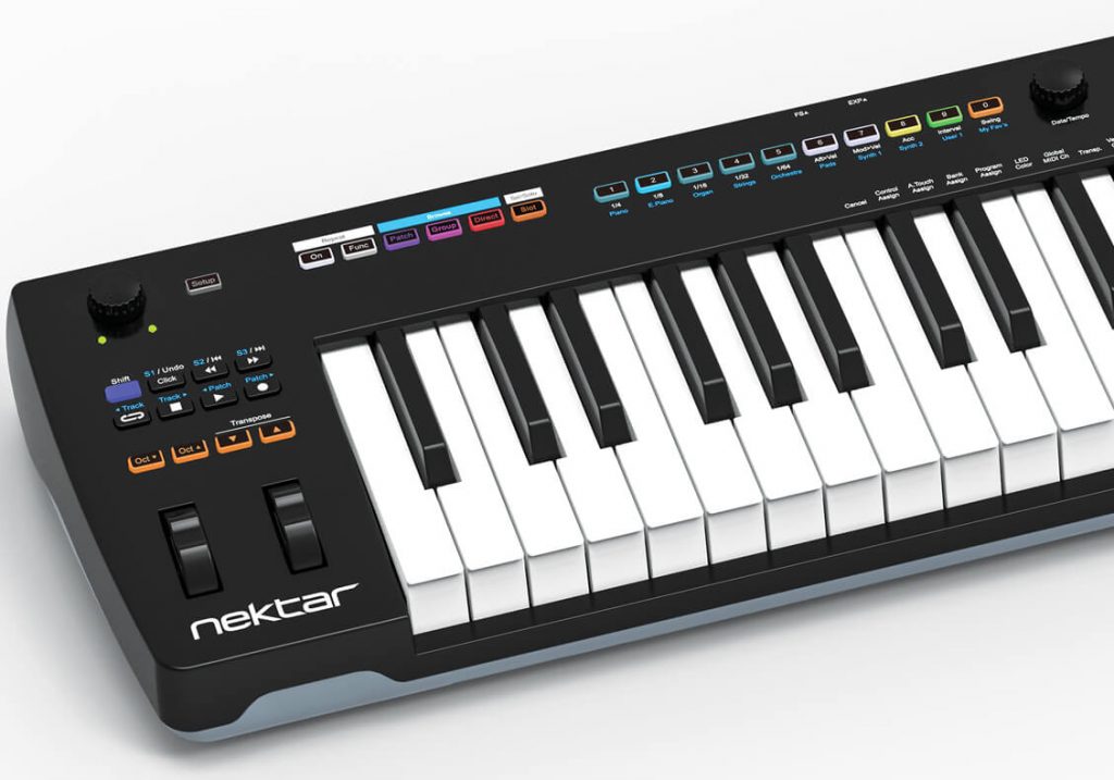 Nektar Panorama T4 15 372 грн. (немає) USB MIDI клавіатура/контролер, 49 клавіш з функцією aftertouch + контролери: 8 енкодерів, 9 фейдерів, 6 транспортних кнопок, 8 педів, 1 колесо модуляції, 1 колесо pich bender, зміна октави, MIDI-Out, вхід для педалі, USB кабель і ПО у комплекті.
