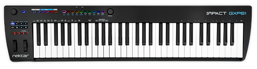 MIDI-клавіатура Nektar Impact GXP61 має напівзважену клавіатуру та миттєвий доступ до управління плагінами, включаючи потужний Nektarine та Nektar DAW. 14 кнопок що переназначаються, підсвічених різними кольорамидля переключення між банками та програмами. Колеса зміни висоти тону та модуляції та можливість підключення 3 педалей: 1 вхід для педалі експресії та 1 вхід для футсвіч, в який за допомогою адаптера можливо під'єднати ще 2 педалі. Виділені підсвічені кнопки Repeat для управління частоти повторення, акценту, інтервалу, свінгу та ін. 8 кнопок для управління транспорту у DAW. У комплекті DAW Steinberg Cubase LE та віртуальний синтезатор Steinberg Retrologue 2, по регістрації доступні також Nektar DAW integration support та Nektarine, що дозволяє перетворити клавіатуру на робочу станцію з можливістю розбивати її на зони, нашаровувати звуки та ін. Розміри: 96,5 x 23 x 7,2 см, Вага: 5 Кг.