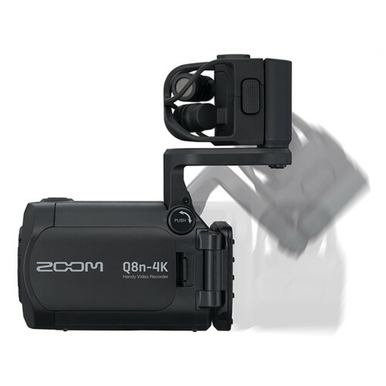 Портативний відеорекордер, який може записати одночасно до 4х аудіодоріжок з використанням входів XLR (до 24 бит / 96 кГц) та відео в 4К. Фіксований ширококутний та поворотний на 180° об'єктив з діафрагмою150°. Зйомка відео 4K HDR зі швидкістю 30 кадрів/сек, або 1080p чи 720p зі швидкістю 60 кадрів/сек. Підтримка MicroSD карт пам'яті до 512 ГБ. Підтримка всіх мікрофонний капсулів Zoom покоління v2.0. Є 5 елементів управління звуком включаючи Limiter, Compressor, Leveler, DeEsser та NoiseGate. 3 рівня регулювання яскравості. Функція веб-камери (лише в HD якості). Бездротове підключення через Bluetooth за допомогою адаптера Zoom BTA-1 (продається окремо). Вага: 367 г. Час роботи при зйомці в 4К: 1год 20хв. Комплектація: відеорекордер Q8n-4K, батарея BT-03, кришка об'єктива, бленда об'єктива, вітрозахист, USB кабель, інструкція