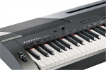 Портативне цифрове піаніно KA-S1. 88 клавіш з напівзваженною молоточковою механікою та 6 рівнями чутливості клавіш (S1). звукова бібліотека KORE 1.0 (128MB), поліфонія 128 голосів, 16 програм (звуків), функціональність розділення та нашарування тембрів, транспонування, ефекти: Reverb, Chorus, EQ, рекордер на 1 трек, 1 пісню, акустична система 30 Вт (2 x 15Вт), аналогові входи: (1) 1/8″ стерео, аналогові виходи: (2) RCA лівий/правий, (1) вихід на 1/4″,MIDI по USB, (1) вхід для педалі сустейн (одинарна педаль в комплекті), комплектація: DC блок живлення, педаль сустейн, пюпітр, USB кабель. Колір: чорний, розміри: 8 х 28 х 127 см, вага: 9 Кг.