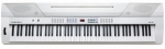 Компактне цифрове піаніно, що сполучає в собі відмінну якість звучання, широкі можливості та доступну ціну. Повнооктавна чутлива до сили натискання клавіатура на 88 клавіш з молоточковою механікою рояльного типу задовольнить вимоги викладачів, учнів і просто музикантів-аматорів; 128-голосова поліфонія, 20 експресивних звуків, 50 стилів фортепіанного автоакомпанементу, можливість розбивання на зони клавіатури і нашарування тембрів, транспонування, ефекти реверберації, хоруса, еквалайзер, рекордер. 60-ватна 4-спікерная акустична система; Стерео 1/4 "аудіо входи і виходи; 2 виходи на навушники; MIDI: Out (вихід); USB порт передає сигнал MIDI по USB; Стійка (не комплектується); Комплектація: Блок живлення, педаль Sustain; Розміри: 13,7 см х 136,5 см х 36,6 см; Вага: 12,3 кг; Колір: білий