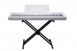 Компактне цифрове піаніно, що сполучає в собі відмінну якість звучання, широкі можливості та доступну ціну. Повнооктавна чутлива до сили натискання клавіатура на 88 клавіш з молоточковою механікою рояльного типу задовольнить вимоги викладачів, учнів і просто музикантів-аматорів; 128-голосова поліфонія, 20 експресивних звуків, 50 стилів фортепіанного автоакомпанементу, можливість розбивання на зони клавіатури і нашарування тембрів, транспонування, ефекти реверберації, хоруса, еквалайзер, рекордер. 60-ватна 4-спікерная акустична система; Стерео 1/4 "аудіо входи і виходи; 2 виходи на навушники; MIDI: Out (вихід); USB порт передає сигнал MIDI по USB; Стійка (не комплектується); Комплектація: Блок живлення, педаль Sustain; Розміри: 13,7 см х 136,5 см х 36,6 см; Вага: 12,3 кг; |