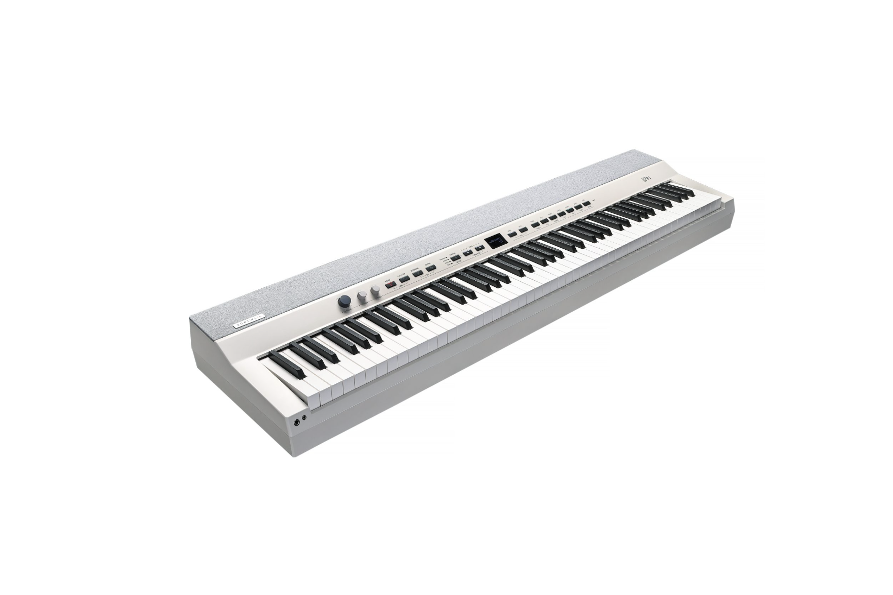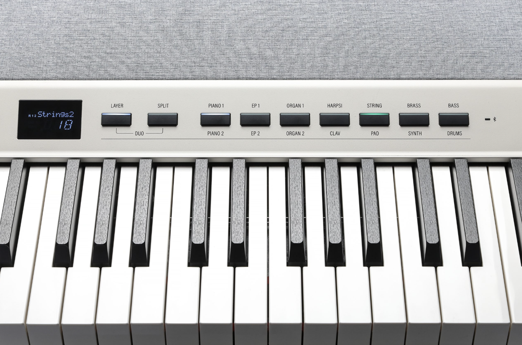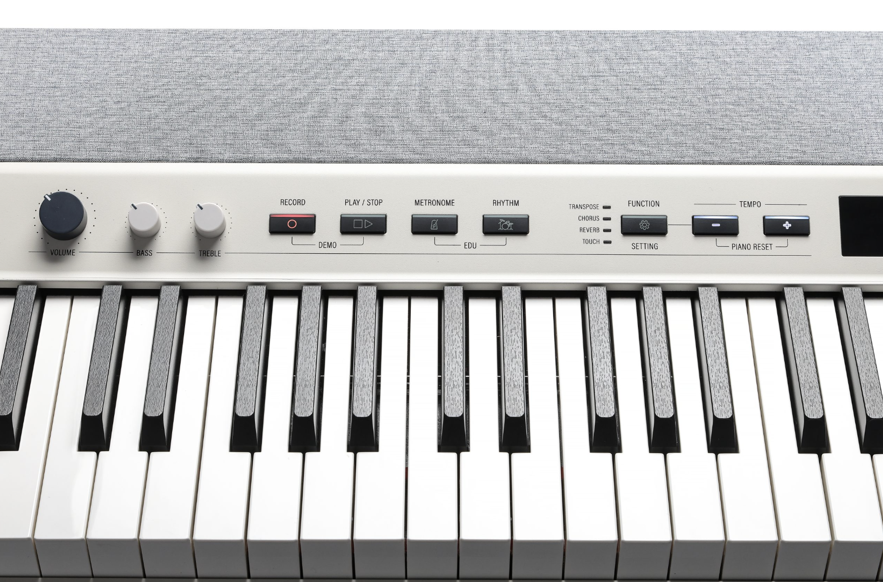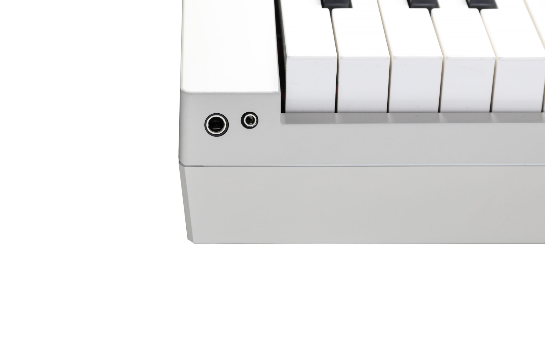 Портативне цифрове піаніно KA-P1. 88 клавіш з повнозваженою молоточковою механікою та 4 рівнями чутливості клавіш (H1 Ivory). LCD дисплей, звукова бібліотека KORE 2.0 (2GB), поліфонія 256 голосів, 28 програм (звуків), функціональність розділення та нашарування тембрів, транспонування, ефекти: Reverb, Chorus, EQ, 10 ритмічних патернів, рекордер на 1 трек, 1 пісню, акустична система 30 Вт (2 x 15Вт), аналогові входи: (1) 1/8″ стерео, аналогові виходи: (2) 1/4″ лівий/правий, вихід на навушники: (1) 1/4″, (1) 1/8″. MIDI по USB, Bluetooth: BT 5.2 Audio/MIDI, (1) вхід для педалі сустейн (одинарна педаль в комплекті), комплектація: DC блок живлення, педаль сустейн, пюпітр, USB кабель. Колір: білий, розміри: 11.7 х 33.5 х 131.6 см, вага: 19.7 Кг.
