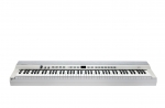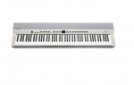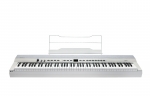 Цифрове піаніно. 88 клавіш з повнозваженою молоточковою механікою і чутливістю до сили натискання. 64-голосна поліфонія. 16 пресетів, 16 демо композицій, функція нашарування тембрів і поділу клавіатури, транспонування, ефекти: Reverb і Chorus, метроном, рекордер 2 трека. Акустична система: 2 х 15 Вт, Стерео аудіо виходи і входи (RCA), 2 входи для навушників 1/4", MIDI вхід / вихід, USB з функціональністю MIDI. 3 вбудованих фортепіанних педалі: sustain, sostenuto, soft. Колір: білий матовий, банкетка в комплекті. Розміри: 81.5 x 138 x 42 см, вага: 49 Кг. |