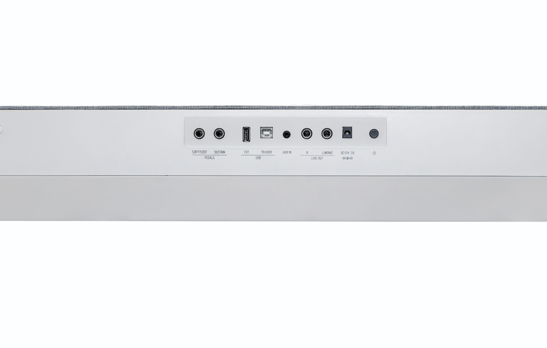 Цифрове піаніно. 88 клавіш з повнозваженою молоточковою механікою та чутливістю до натискання на клавіші (88RGTA), 6 обираних рівнів чутливості, Поліфонія: 32 голоси, програми: 16 основних (+116 для GM), функції нашарування тембрів, розділення клавіатури, режим Dual, 50 демо композицій + 221 навчальна композиція, рекордер: 5 композицій, General MIDI, Транспонування, Мікроподстройка, метроном, Режим навчання, акустична система: 30 W (15W + 15W), стерео лівий/правий RCA лінійні виходи, стерео лівий/правий RCA лінійні входи, 2 стерео виходи для навушників 1/4", USB передає MIDI сигнал, 3 вбудованих педалі сустейн, состенуто, софт (з ефектом напів-натиснення), колір: білий матовий, банкетка під колір інструменту в комплекті, розміри: 1362 мм (ширина) x 440 мм (глибина) x 855 мм (висота), вага: 43.5 кг, живлення: зовнішній блок живлення DC 12V, 2.0A. |