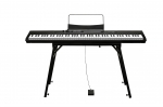 Компактне цифрове піаніно, що сполучає в собі відмінну якість звучання, широкі можливості та доступну ціну. Повнооктавна чутлива до сили натискання клавіатура на 88 клавіш з молоточковою механікою рояльного типу задовольнить вимоги викладачів, учнів і просто музикантів-аматорів; 128-голосова поліфонія, 20 експресивних звуків, 50 стилів фортепіанного автоакомпанементу, можливість розбивання на зони клавіатури і нашарування тембрів, транспонування, ефекти реверберації, хоруса, еквалайзер, рекордер. 60-ватна 4-спікерная акустична система; Стерео 1/4 "аудіо входи і виходи; 2 виходи на навушники; MIDI: Out (вихід); USB порт передає сигнал MIDI по USB; Стійка (не комплектується); Комплектація: Блок живлення, педаль Sustain; Розміри: 13,7 см х 136,5 см х 36,6 см; Вага: 12,3 кг; |