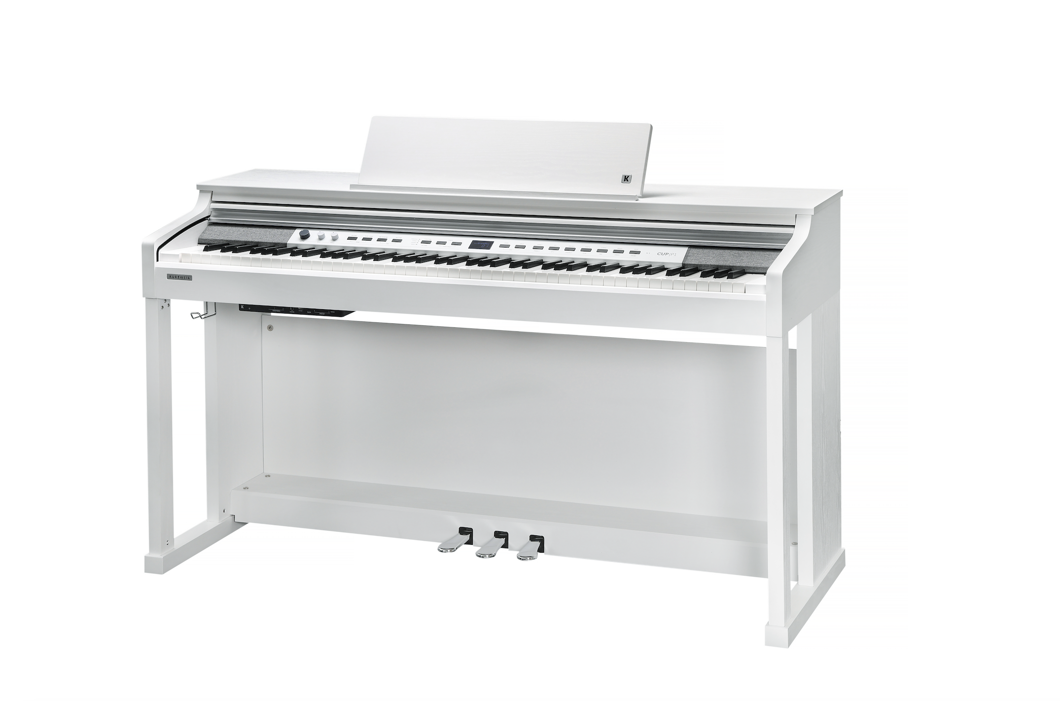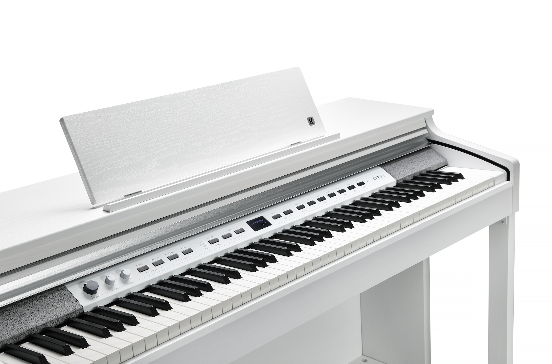 Kurzweil CUP M1 WH 44 604 грн. (є в наявності) Цифрове піаніно CUP M1. 88 клавіш з повнозваженою молоточковою механікою та 4 рівнями чутливості клавіш (H1 Ivory). LCD дисплей, звукова бібліотека KORE 2.0 (2GB), поліфонія 256 голосів, 12 програм (звуків), функціональність розділення та нашарування тембрів, транспонування, ефекти: Reverb, Chorus, EQ, рекордер на 1 трек, 1 пісню, акустична система 30 Вт (2 x 15Вт), аналогові входи: (1) 1/8″ стерео, аналогові виходи: (2) 1/4″ лівий/правий, вихід на навушники: (2) 1/4″, MIDI по USB, Bluetooth: BT 5.2 Audio/MIDI, 3 стандартні рояльні педалі, комплектація: DC блок живлення, тримач для навушників, банкетка. Колір: білий. Розміри: піаніно 148 x 52 x 32 см, стійка 146 x 52 x 20 см.