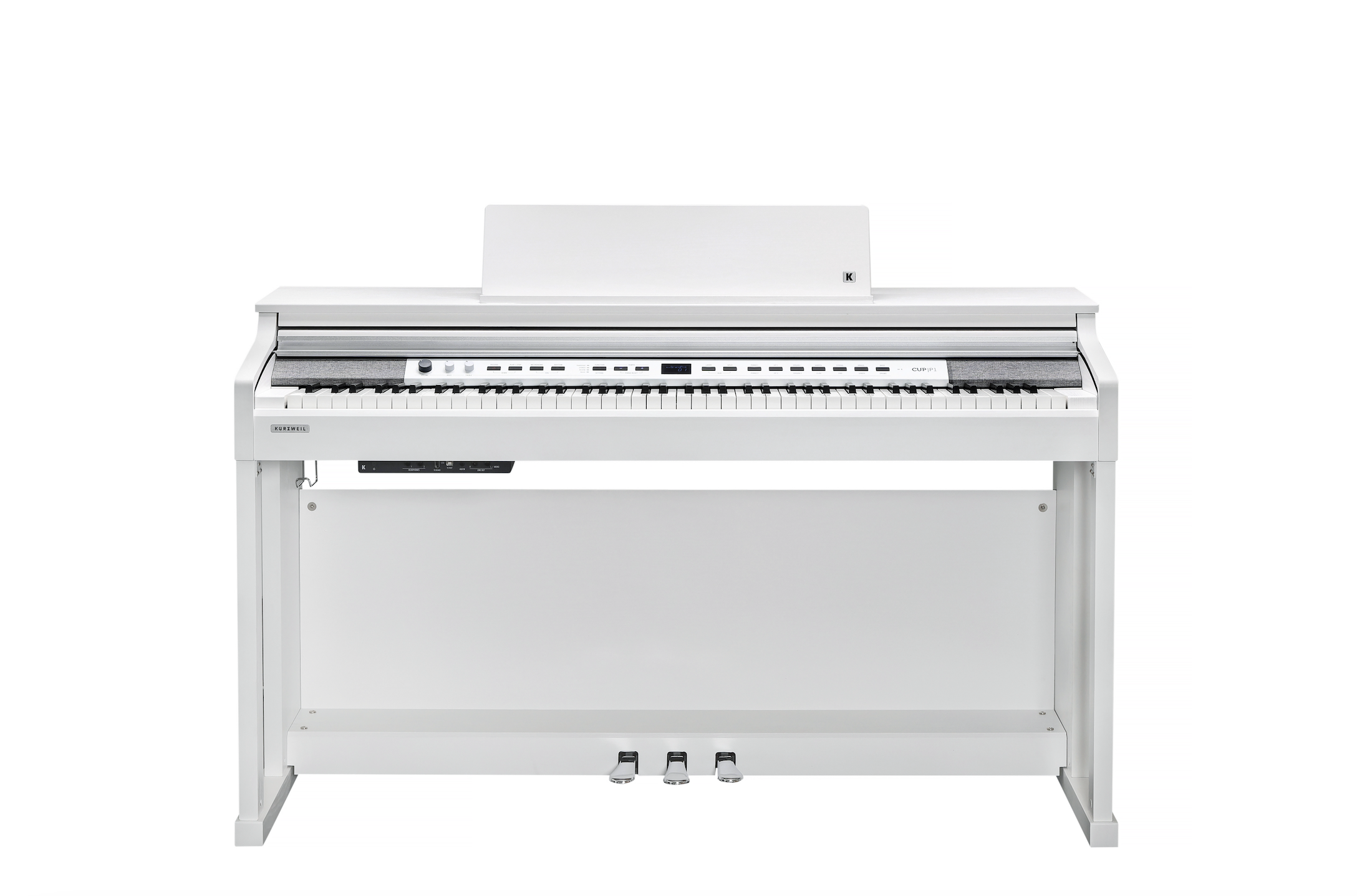 Kurzweil CUP E1 WH 44 352 грн. (є в наявності) Цифрове піаніно CUP E1. 88 клавіш з повнозваженою молоточковою механікою та 4 рівнями чутливості клавіш (H1 Ivory). LCD дисплей, звукова бібліотека KORE 1.0 (128MB), поліфонія 128 голосів, 16 програм (звуків), функціональність розділення та нашарування тембрів, транспонування, ефекти: Reverb, Chorus, EQ, рекордер на 2 трека, 2 пісні, акустична система 40 Вт (2 x 20Вт), аналогові входи: (1) 1/8″ стерео, аналогові виходи: (1) 1/4″ стерео, вихід на навушники: (2) 1/4″, MIDI по USB, Bluetooth: BT 5.0 Audio Reception, 3 стандартні рояльні педалі, комплектація: DC блок живлення, тримач для навушників, банкетка. Колір: білий, розміри: 84.5 х 138.5 х 44.1 см, вага: 49.58 Кг.