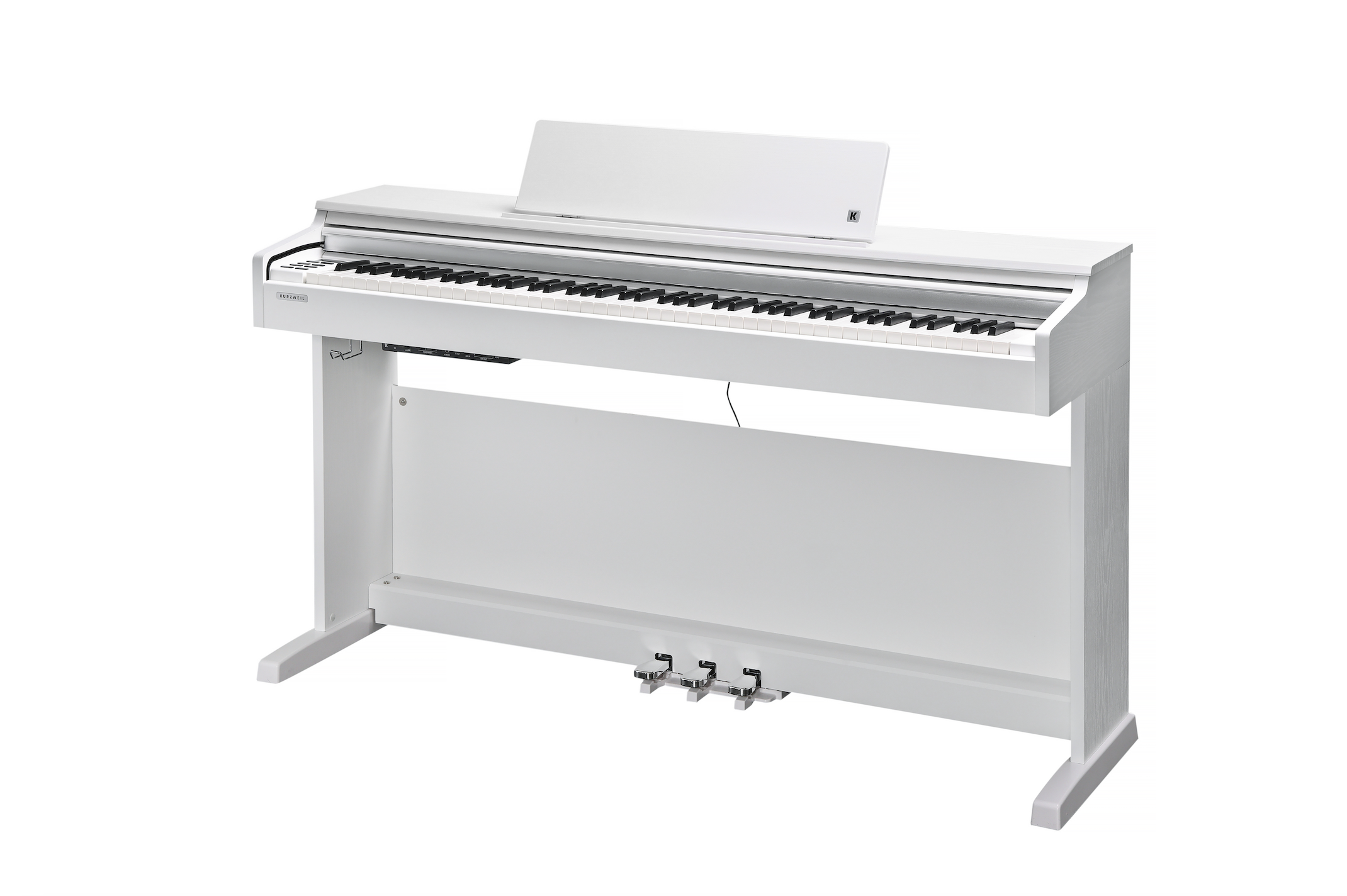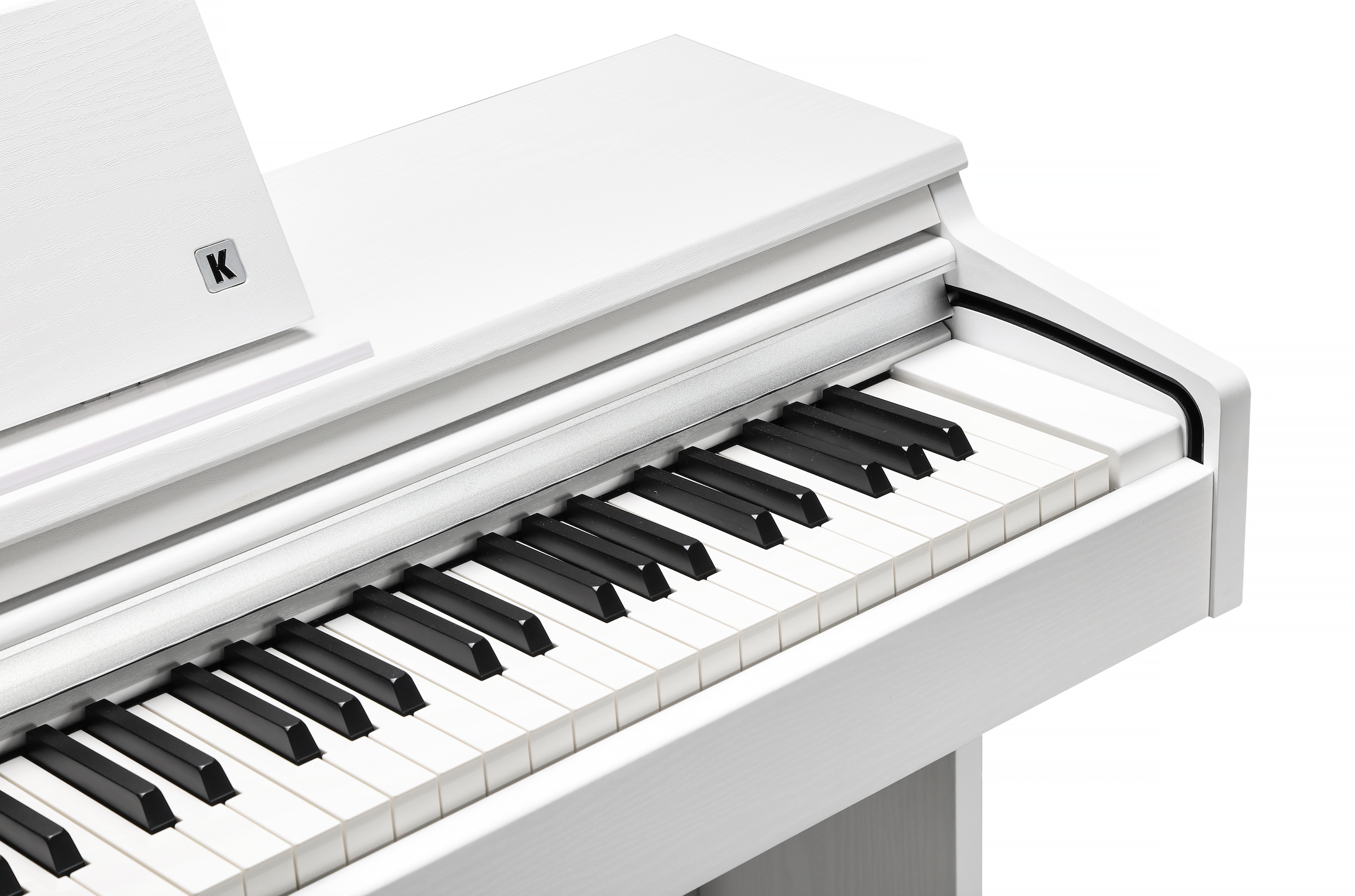 Kurzweil KA-E1 WH 25 704 грн. (є в наявності) Нове цифрове піаніно KA-1E — чудове рішення для домашніх занять та музичних шкіл. KA-E1 має повністю зважену клавіатуру з молоточковою механікою та регульованою чутливістю до дотику, 88 клавіш та128 голосів поліфонії для безпроблемних виконань навіть складних творів. Насолоджуйтеся 20 якісними інструментами, включно з фортепіано, електропіано, органом, клавесином, струнними секціями тощо. Використовуйте різні творчі комбінації клавіатури та тембрів: розділення з регульованою точкою спліту, нашарування або виконання в дуеті. Вибирайте з 14-ти різних музичних розмірів та практикуйтеся під метроном. Під’єднайте свій смартфон або планшет без дроту та відтворюйте музику через вбудовані гучномовці. Записуйте свої виконання за допомогою інтуїтивного однодоріжкового рекордера. KA-E1 має вбудовану стереосистему з чотирьох гучномовців та двох цифрових підсилювачів потужністю по 15 Вт кожен. Розміри: висота 11,2 см, глибина 33,7 см, довжина 132 см. Вага: 14,8 кг. Колір корпусу: білий