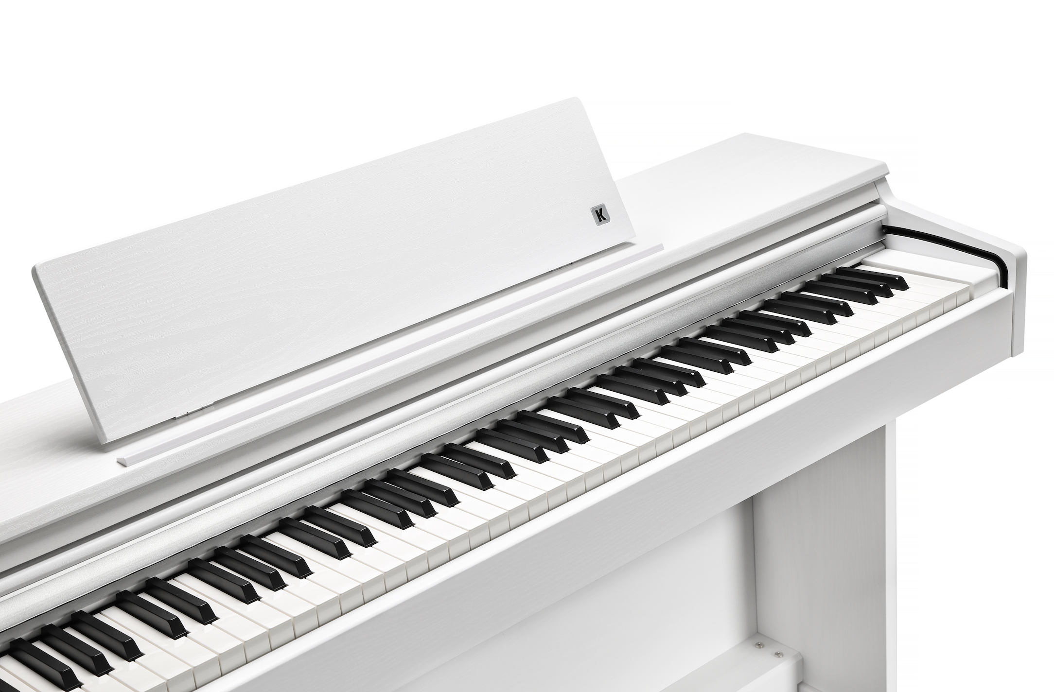 Kurzweil KA-S1 WH 21 168 грн. (є в наявності) Портативне цифрове піаніно KA-S1. 88 клавіш з напівзваженною молоточковою механікою та 6 рівнями чутливості клавіш (S1). звукова бібліотека KORE 1.0 (128MB), поліфонія 128 голосів, 16 програм (звуків), функціональність розділення та нашарування тембрів, транспонування, ефекти: Reverb, Chorus, EQ, рекордер на 1 трек, 1 пісню, акустична система 30 Вт (2 x 15Вт), аналогові входи: (1) 1/8″ стерео, аналогові виходи: (2) RCA лівий/правий, (1) вихід на 1/4″,MIDI по USB, (1) вхід для педалі сустейн (одинарна педаль в комплекті), комплектація: DC блок живлення, педаль сустейн, пюпітр, USB кабель. Колір: білий, розміри: 8 х 28 х 127 см, вага: 9 Кг.