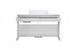 Цифрове піаніно. 88 клавіш з повнозваженою молоточковою механікою і чутливістю до сили натискання. 64-голосна поліфонія. 16 пресетів, 16 демо композицій, функція нашарування тембрів і поділу клавіатури, транспонування, ефекти: Reverb і Chorus, метроном, рекордер 2 трека. Акустична система: 2 х 15 Вт, Стерео аудіо виходи і входи (RCA), 2 входи для навушників 1/4", MIDI вхід / вихід, USB з функціональністю MIDI. 3 вбудованих фортепіанних педалі: sustain, sostenuto, soft. Колір: білий матовий, банкетка в комплекті. Розміри: 81.5 x 138 x 42 см, вага: 49 Кг. |