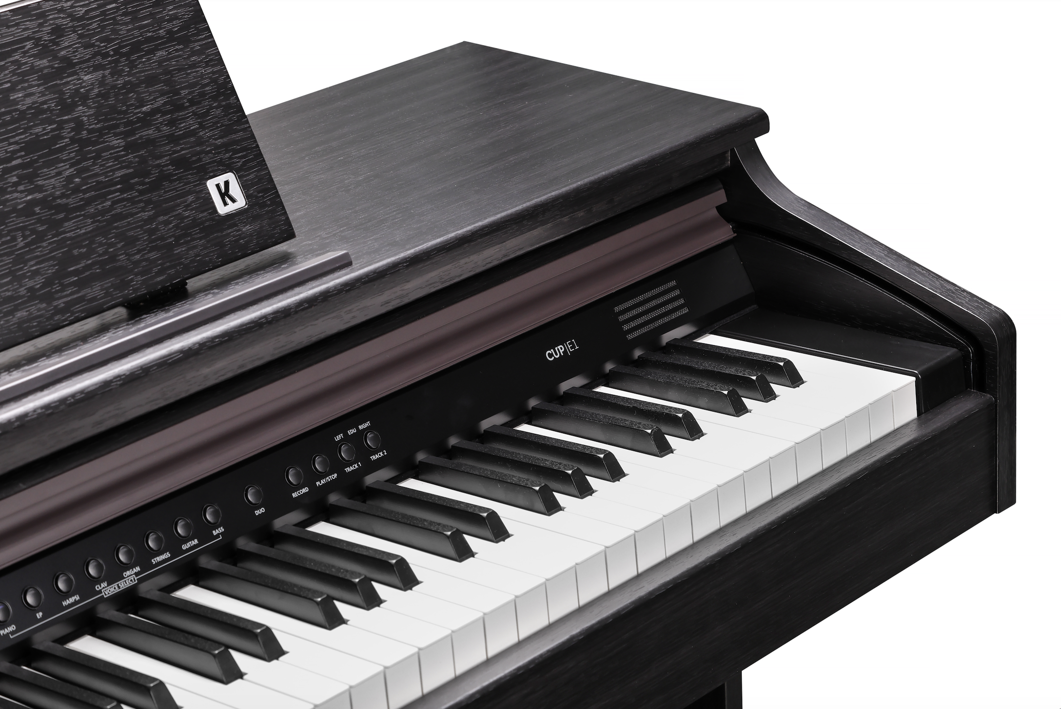 З великим оновленням свого асортименту провідний американський виробник клавішних інструментів Kurzweil представив ще одну нову серію цифрових фортепіано CUP E1, які ідеально підходять для навчання, домашнього музикування або для церковних богослужінь. Дизайн кабінету чорного, білого кольору або з імітацією темного палісандру — чудовий вибір для будь-якого інтер’єру.