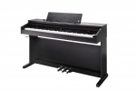 Цифрове піаніно. 88 клавіш з повнозваженою молоточковою механікою і чутливістю до сили натискання. 64-голосна поліфонія. 16 пресетів, 16 демо композицій, функція нашарування тембрів і поділу клавіатури, транспонування, ефекти: Reverb і Chorus, метроном, рекордер 2 трека. Акустична система: 2 х 15 Вт, Стерео аудіо виходи і входи (RCA), 2 входи для навушників 1/4", MIDI вхід / вихід, USB з функціональністю MIDI. 3 вбудованих фортепіанних педалі: sustain, sostenuto, soft. Колір: палісандр, банкетка в комплекті. Розміри: 81.5 x 138 x 42 см, вага: 49 Кг. |